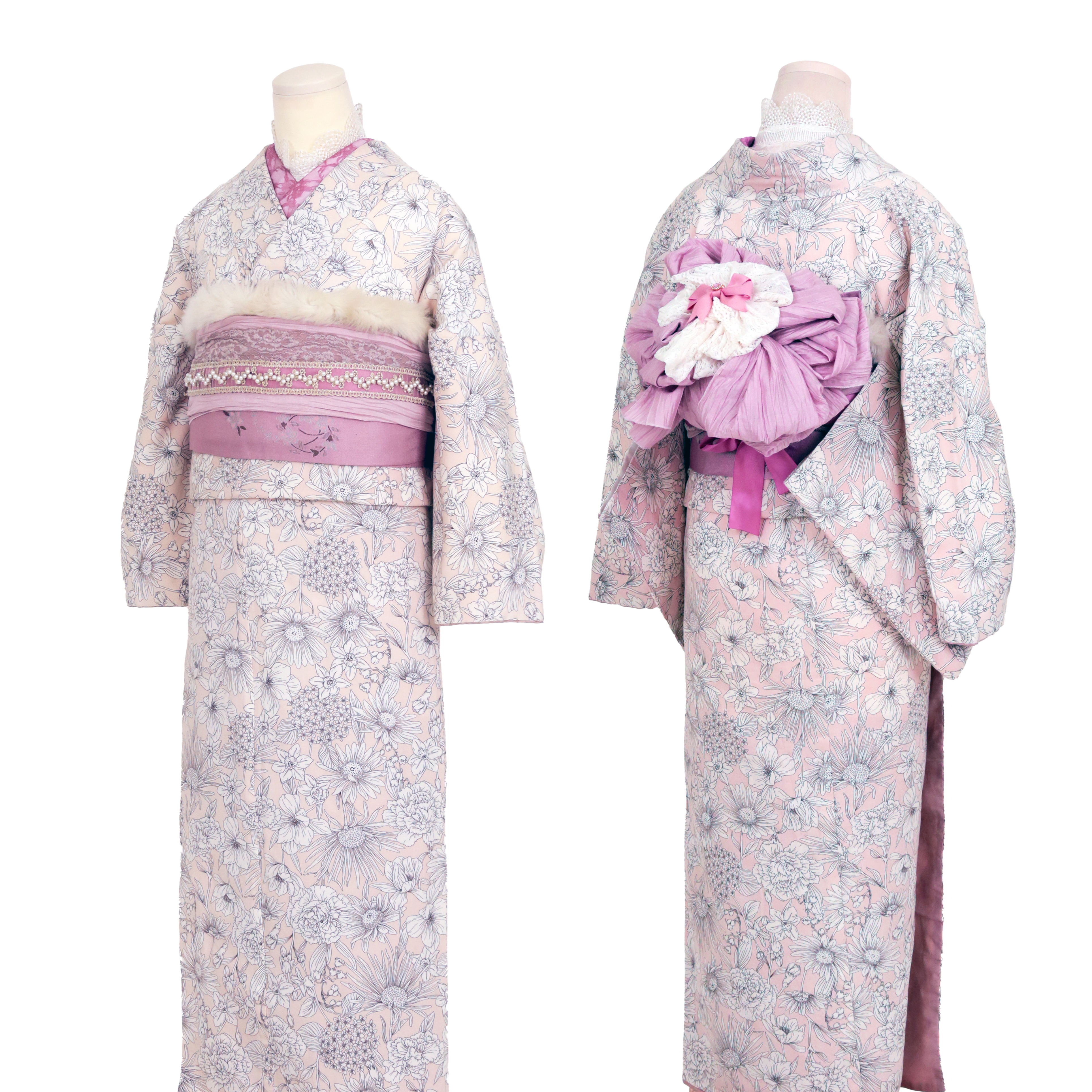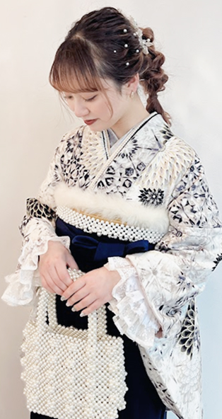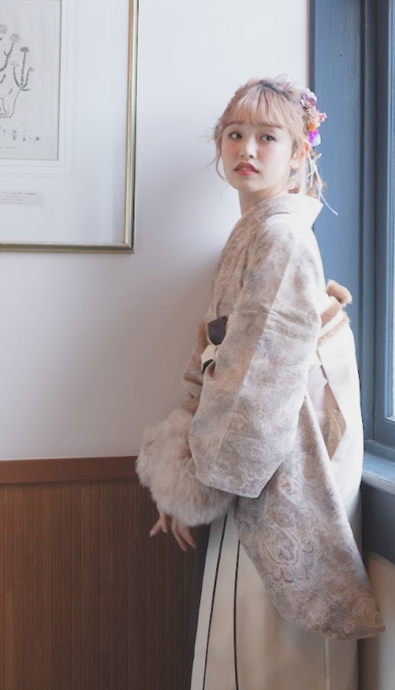 かわいい着物をベースに小物をプラスするとオンリーワンのコーデで写真映えもばっちり。
