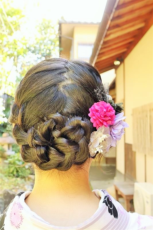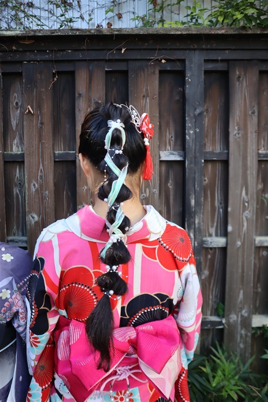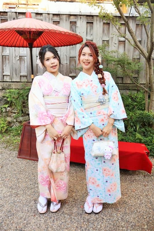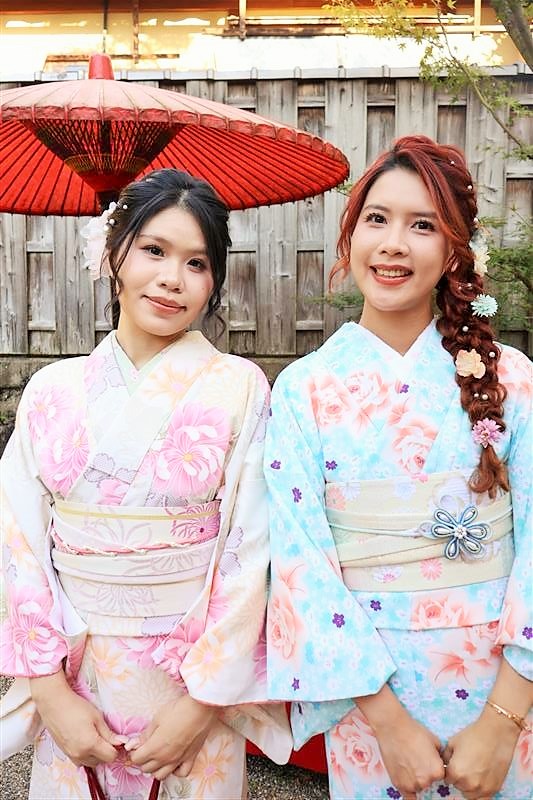 清水寺、八坂神社、祗園などの観光地のすぐ近くに店舗があり、着付だけではなくヘアセットもできます。1000着以上の着物から選べるのでキティちゃんカラーのピンクやパステル系コーデも楽しめます。