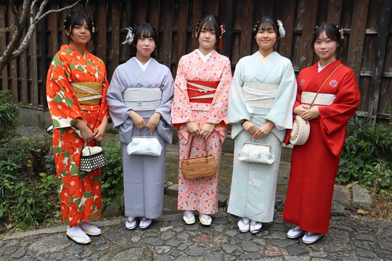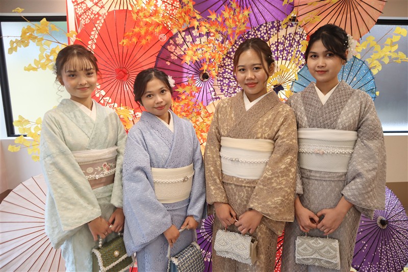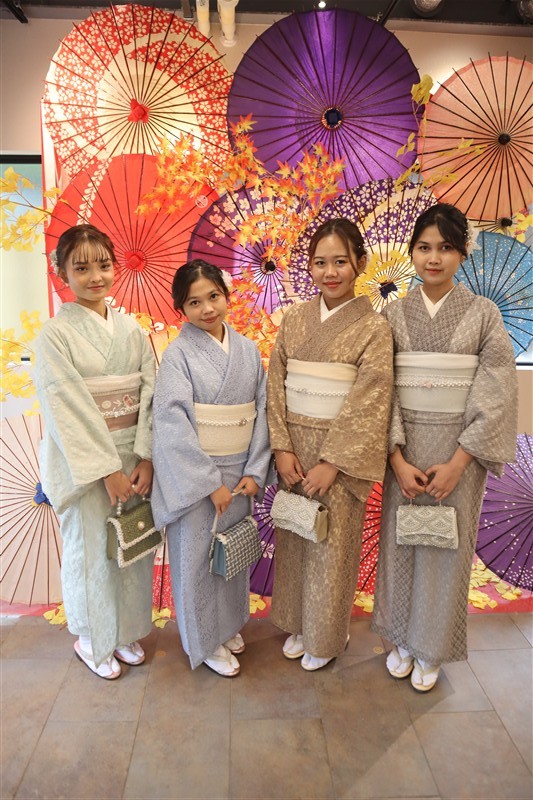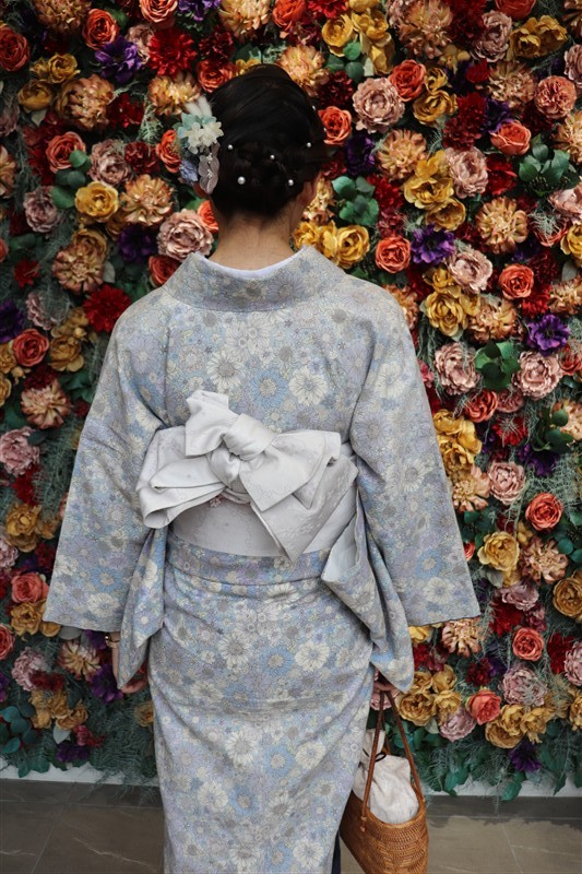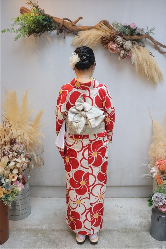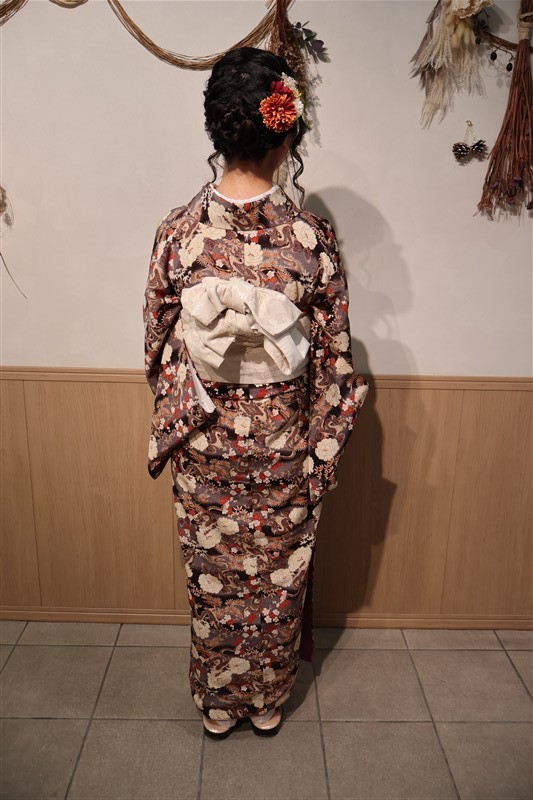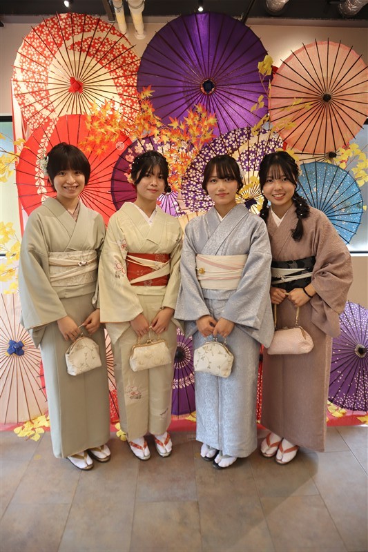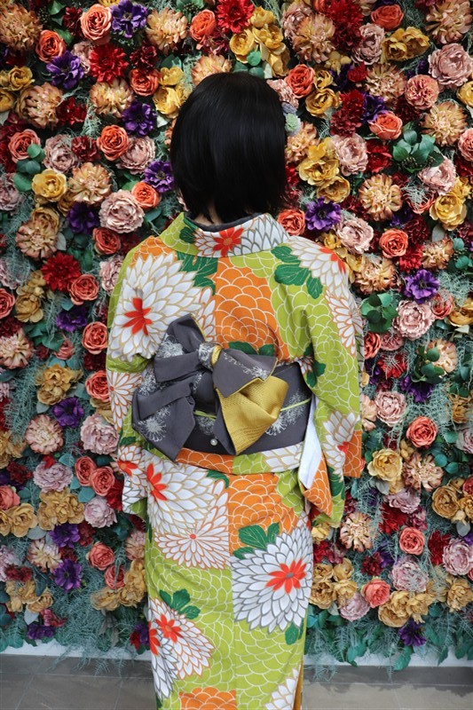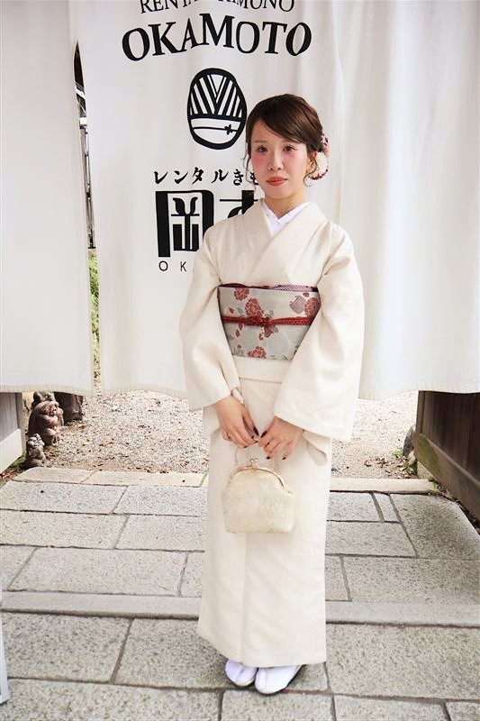 「レンタル着物岡本」では、東福寺までアクセスしやすい店舗があり、紅葉に映える秋色の着物も豊富にご用意しています。深紅や柿色、金糸入りの帯など、紅葉背景にぴったりのコーディネートも人気。