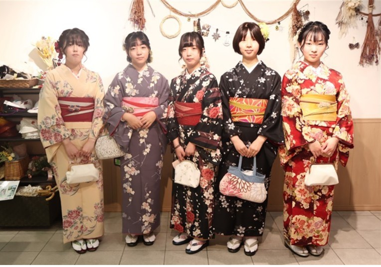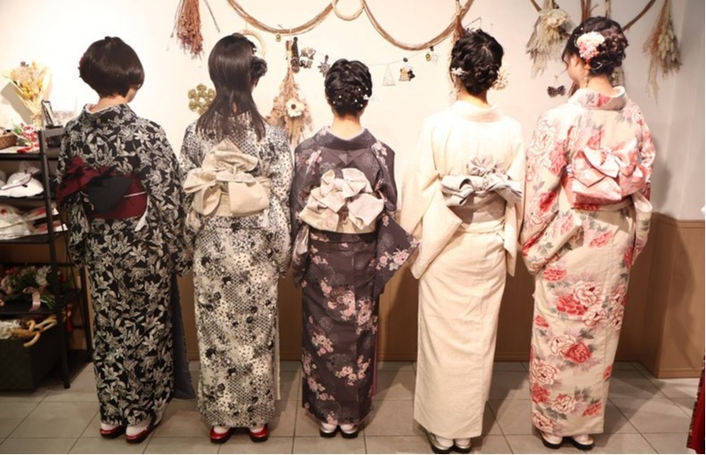 当店「レンタル着物岡本 祇園店」では、秋にぴったりの深い色合いや、紅葉柄の着物も多数ご用意しています。
