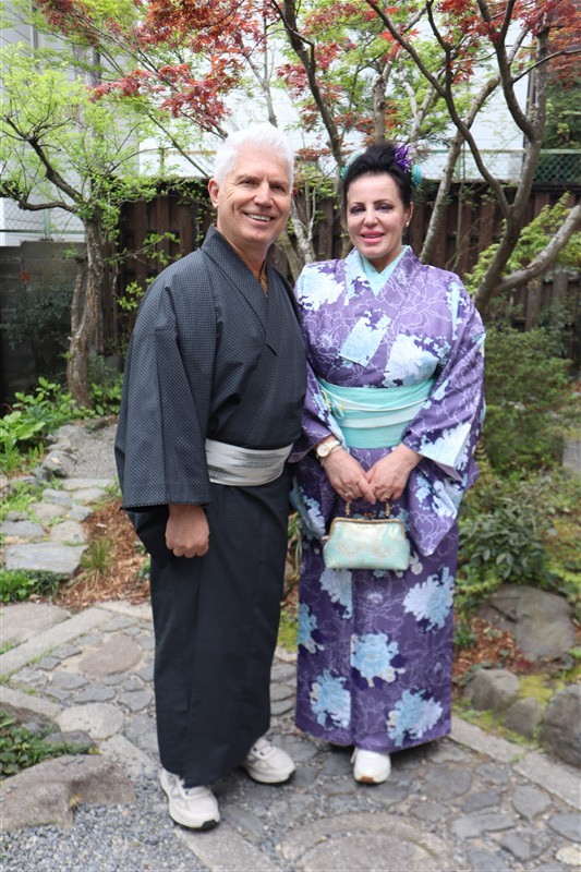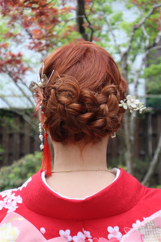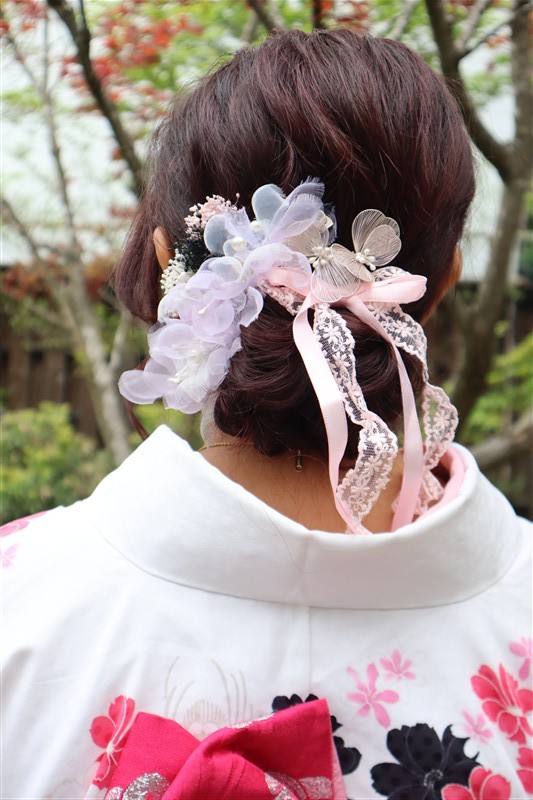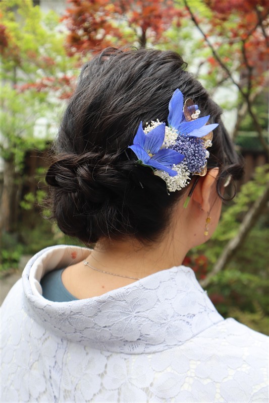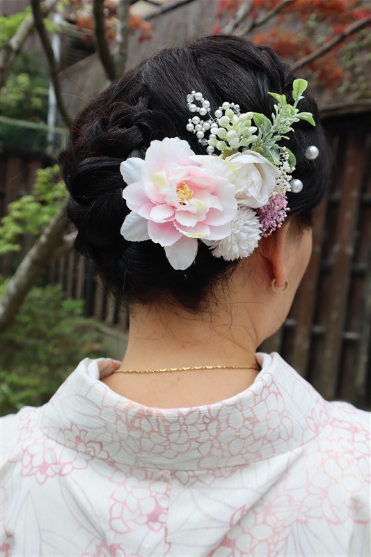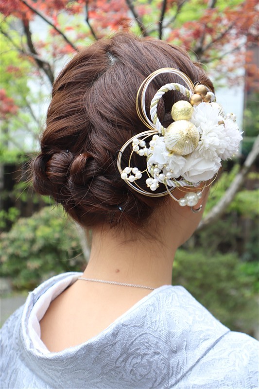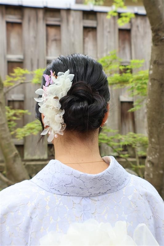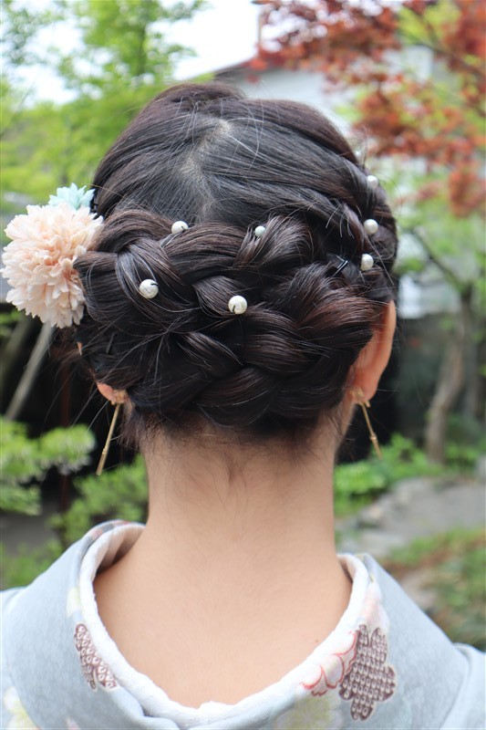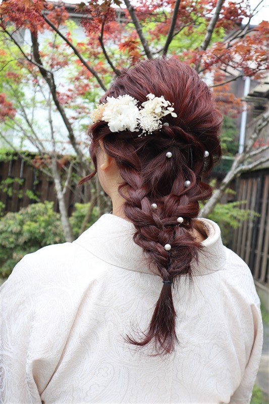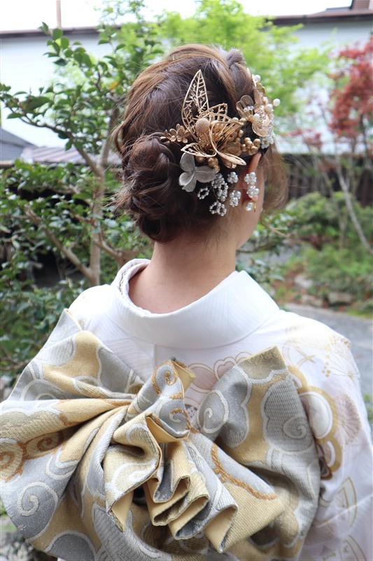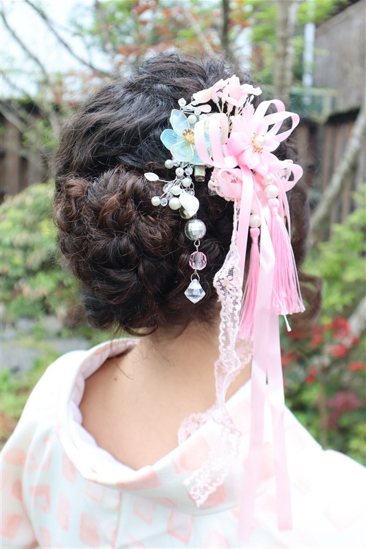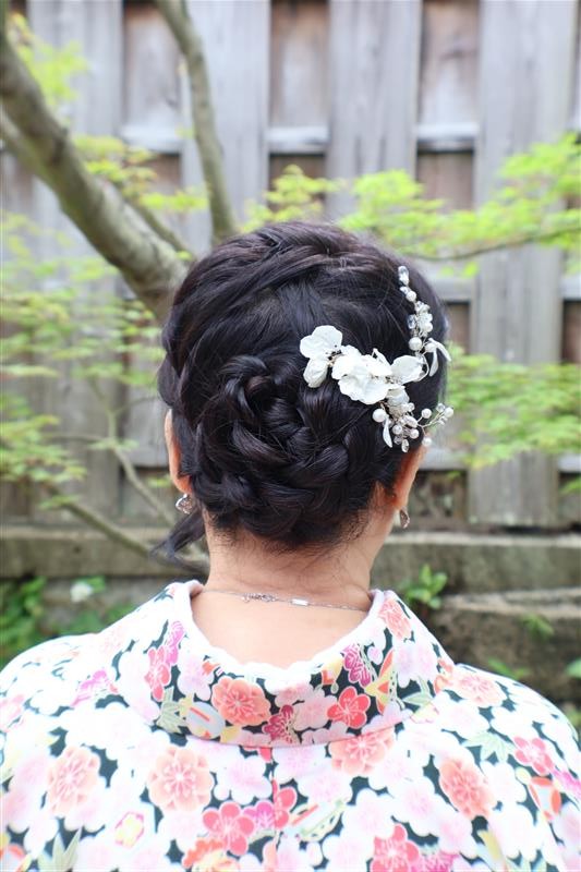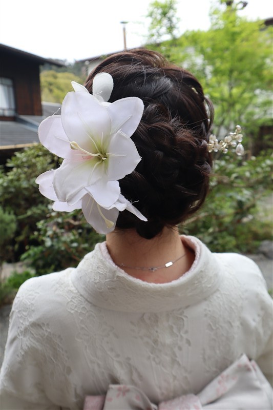 4月中旬から下旬にかけては、新緑が美しくなり始め、やわらかな緑と着物の色合いがとてもよく映えます。