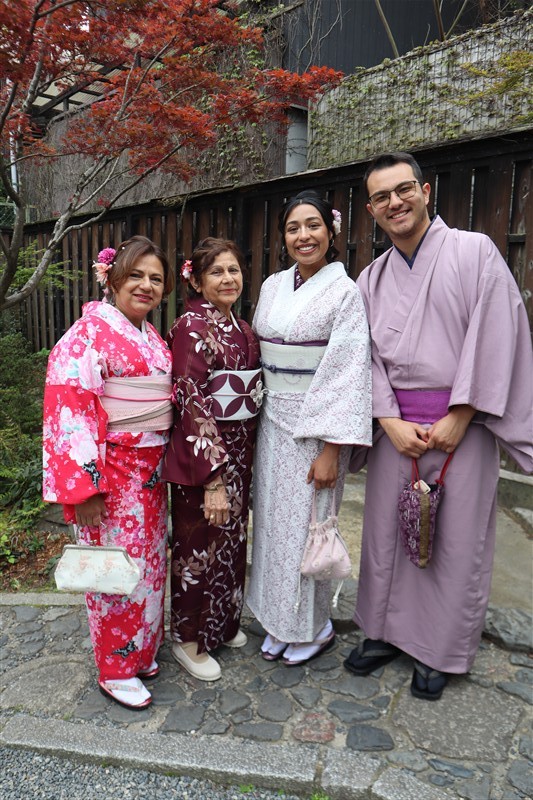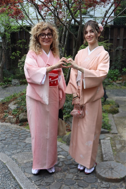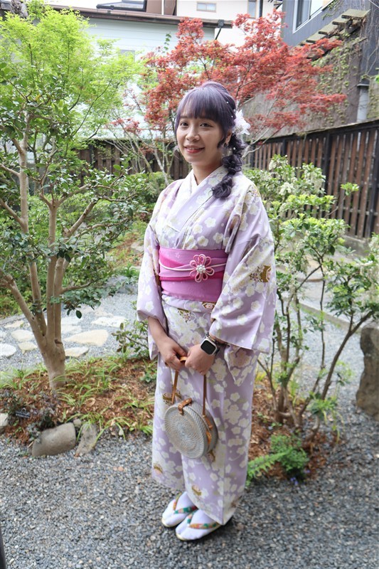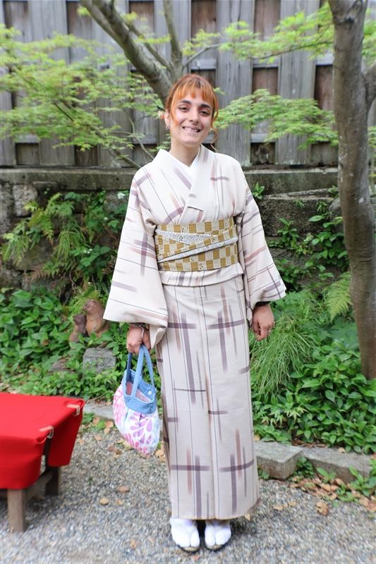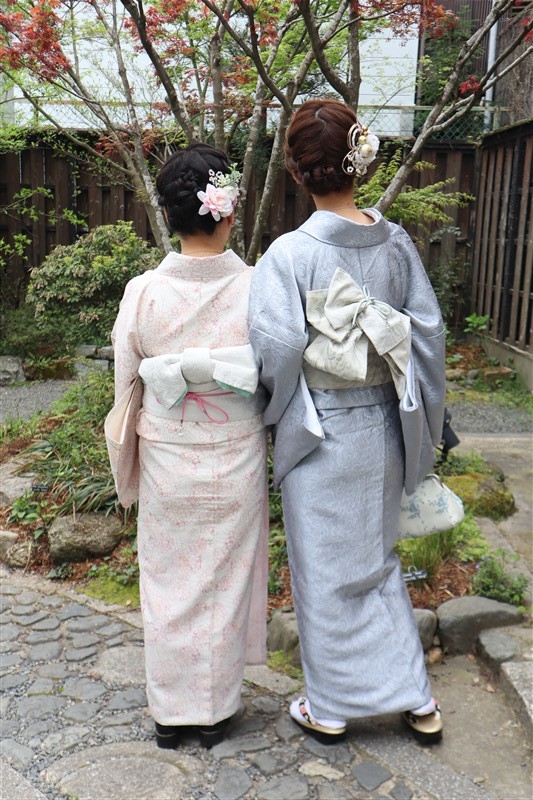 淡い色合いの着物や、くすみカラーのコーディネートは、この時期の京都の景色と相性抜群です。