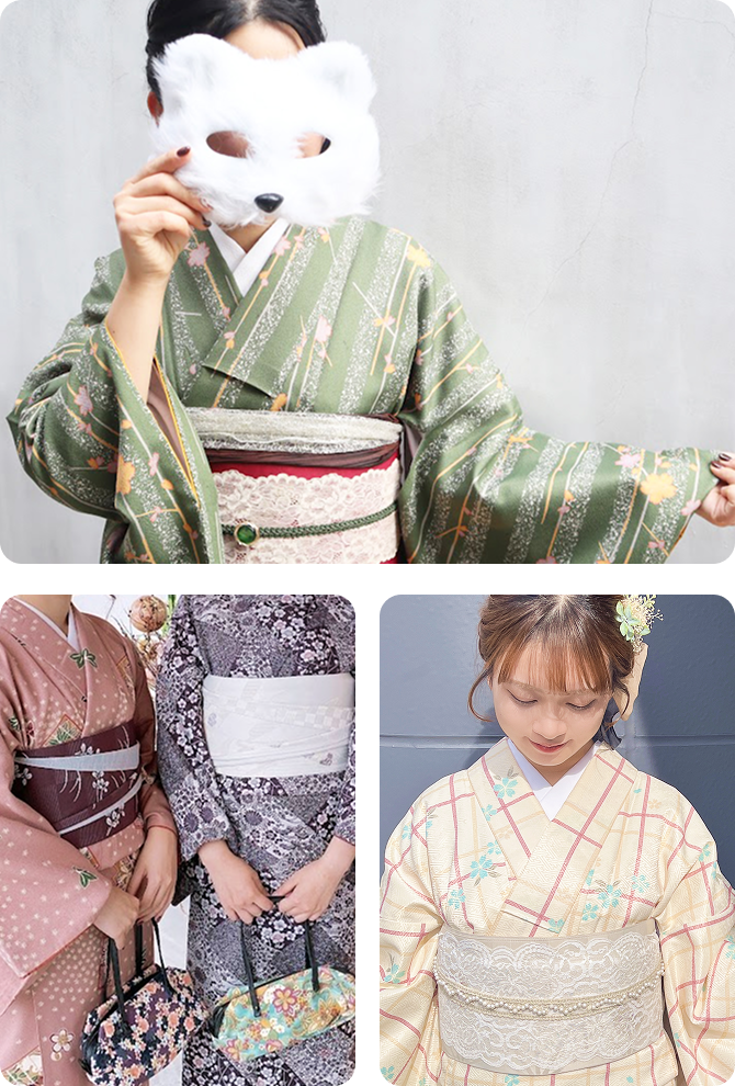 着物を選んだら、帯・鞄は自分でコーディネート!MLサイズ200着から着物を選べるプランです。