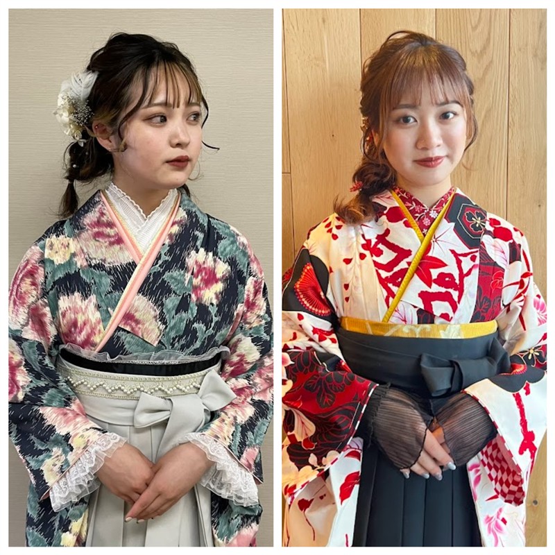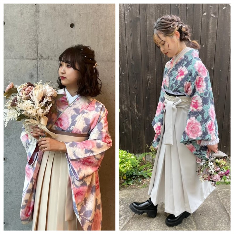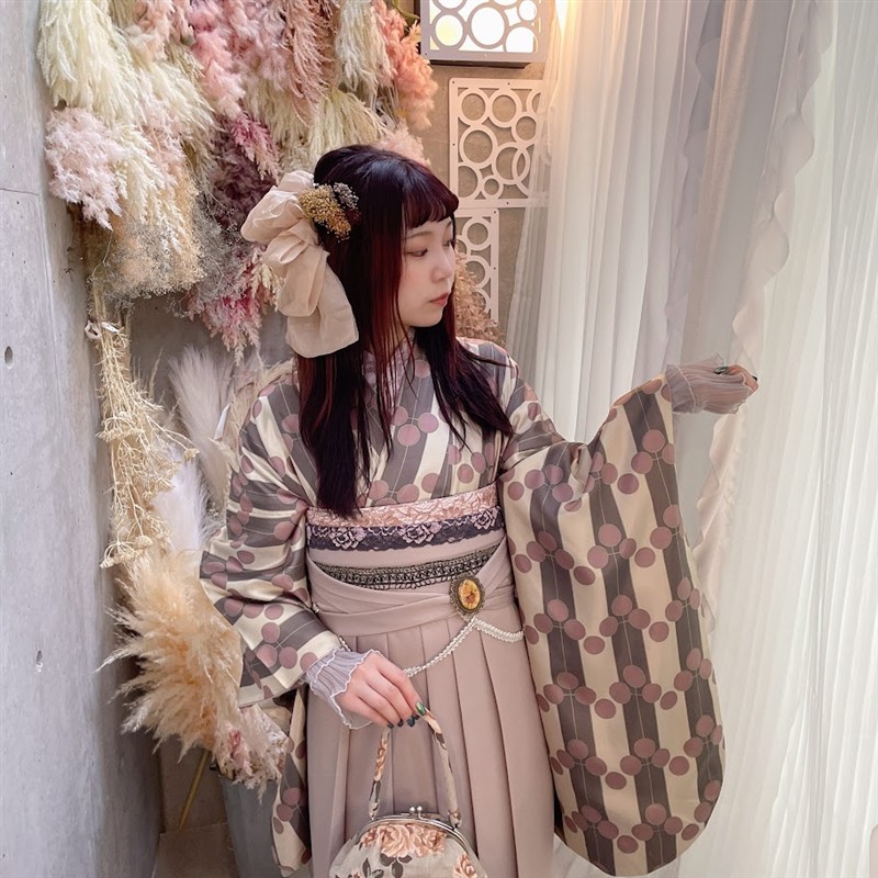※写真で着用している着物は、二尺袖になります。希望の場合は、店舗に取寄せになります。下記リンクよりご確認お願い致します。また、卒業袴の宅配レンタルも行っております。