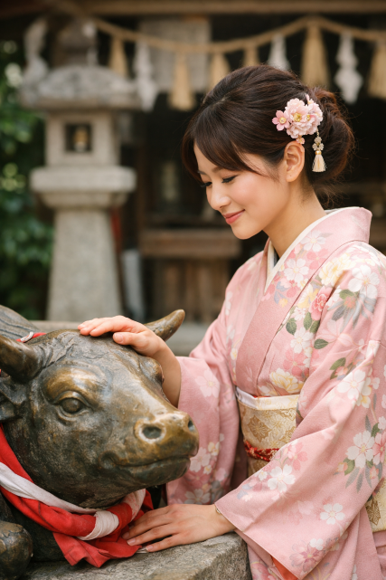 道真公が丑年生まれであったこと、そして太宰府で亡くなられた際、遺体を運ぶ牛車が途中でぴたりと止まり、「ここに葬ってほしい」という神様の意思と受け取られた――そんな伝承が今も語り継がれています🌿
