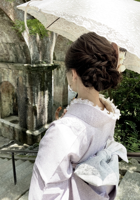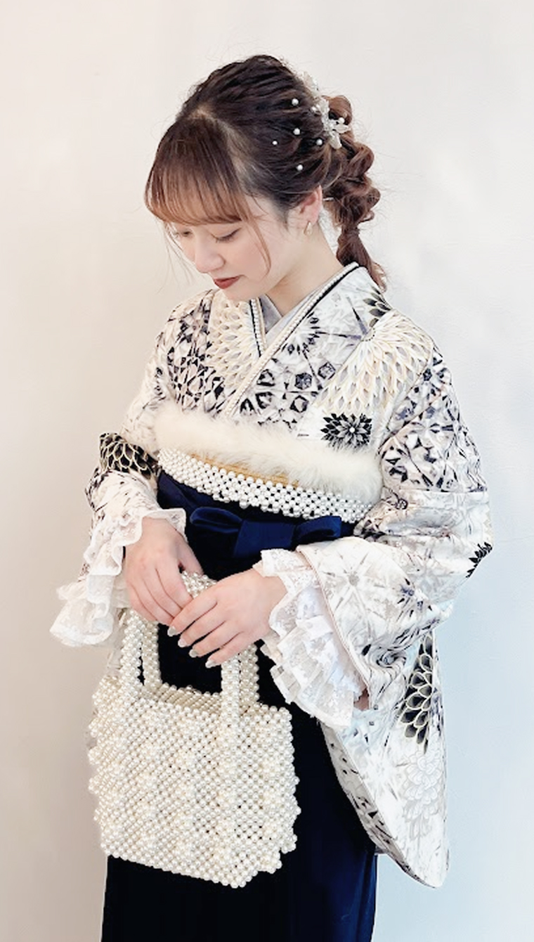 かわいい着物をベースに小物をプラスするとオンリーワンのコーデで写真映えもばっちり。