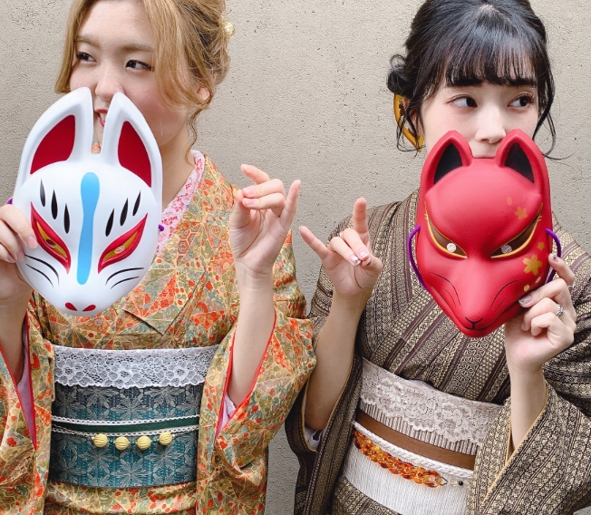 狐のお面を使って