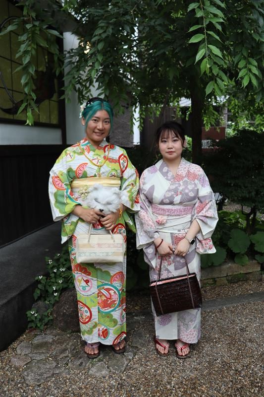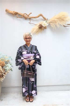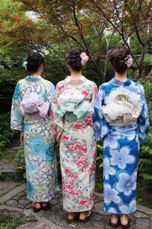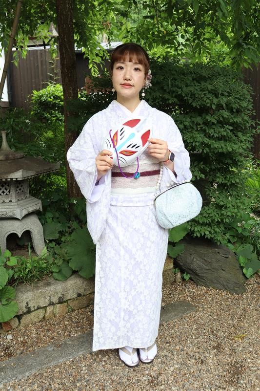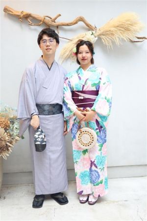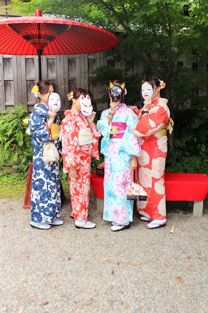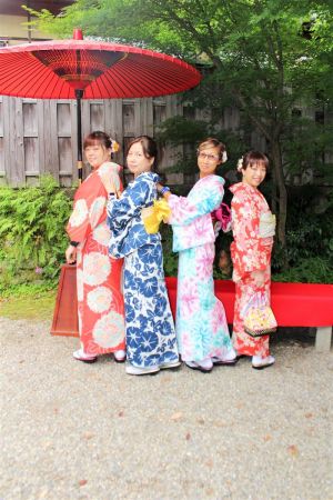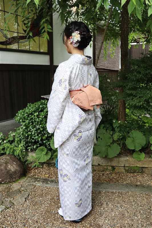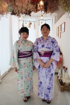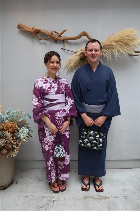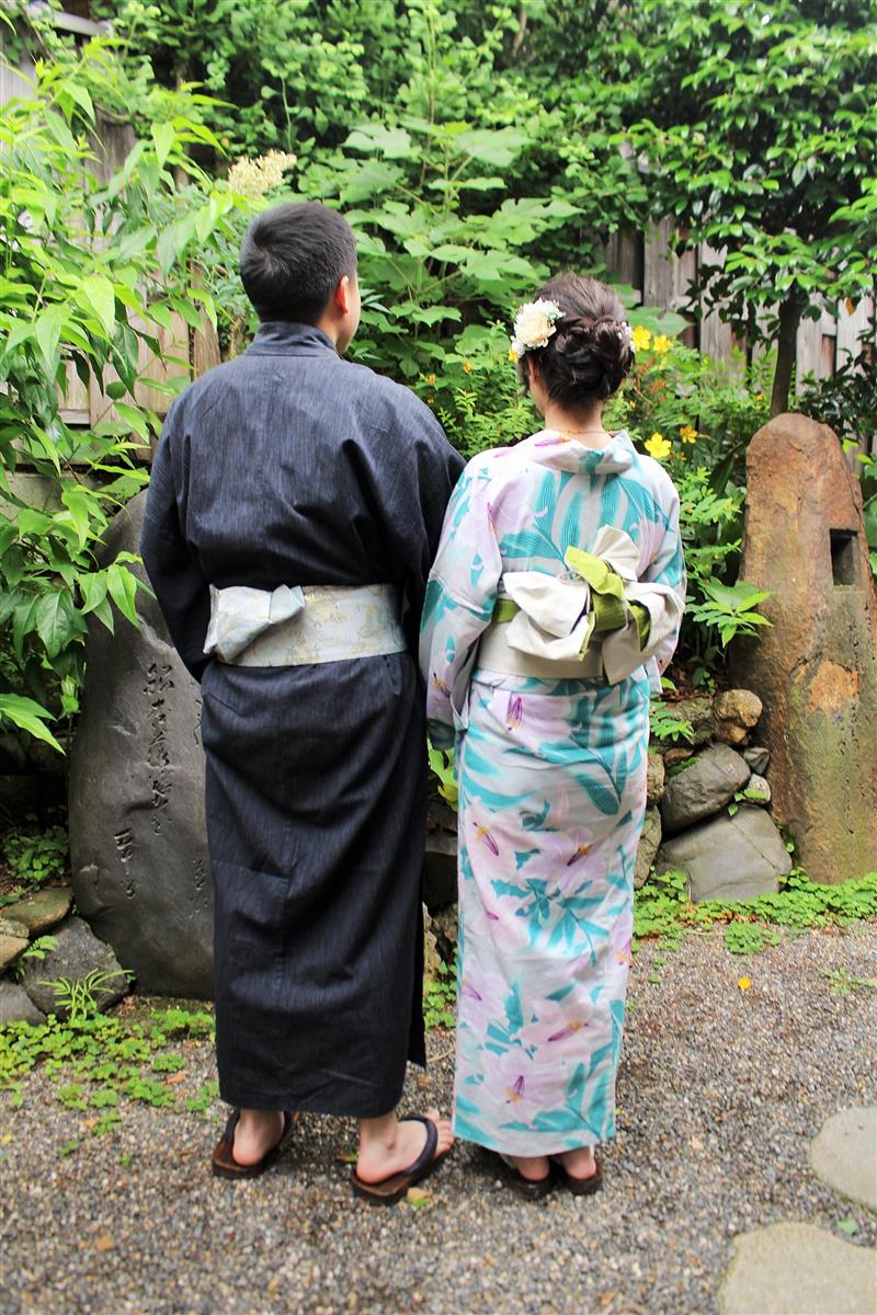 紫陽花色や紫陽花柄の浴衣を着てみたり、傘をさしたりして