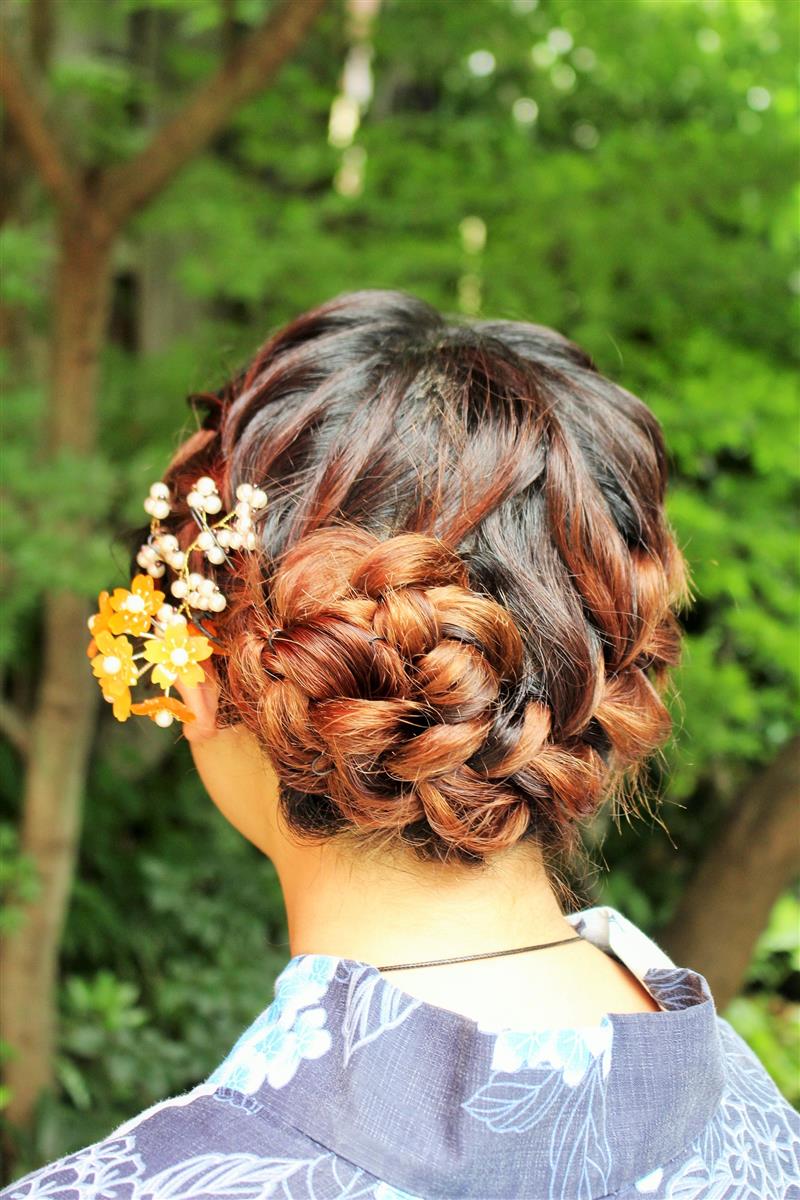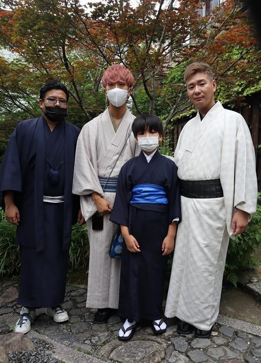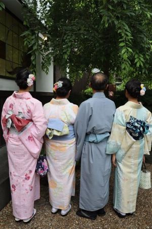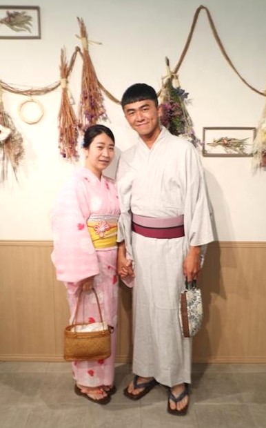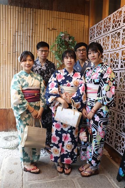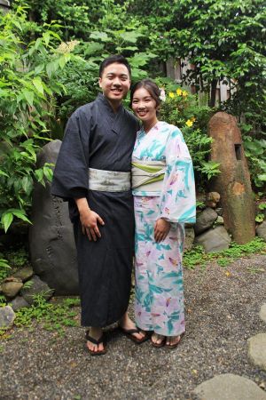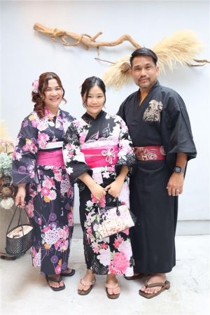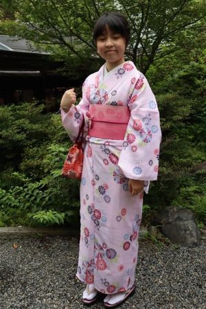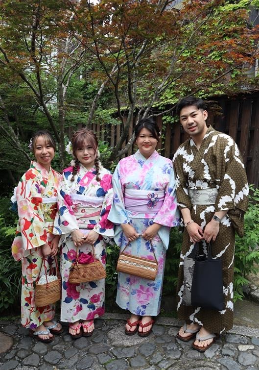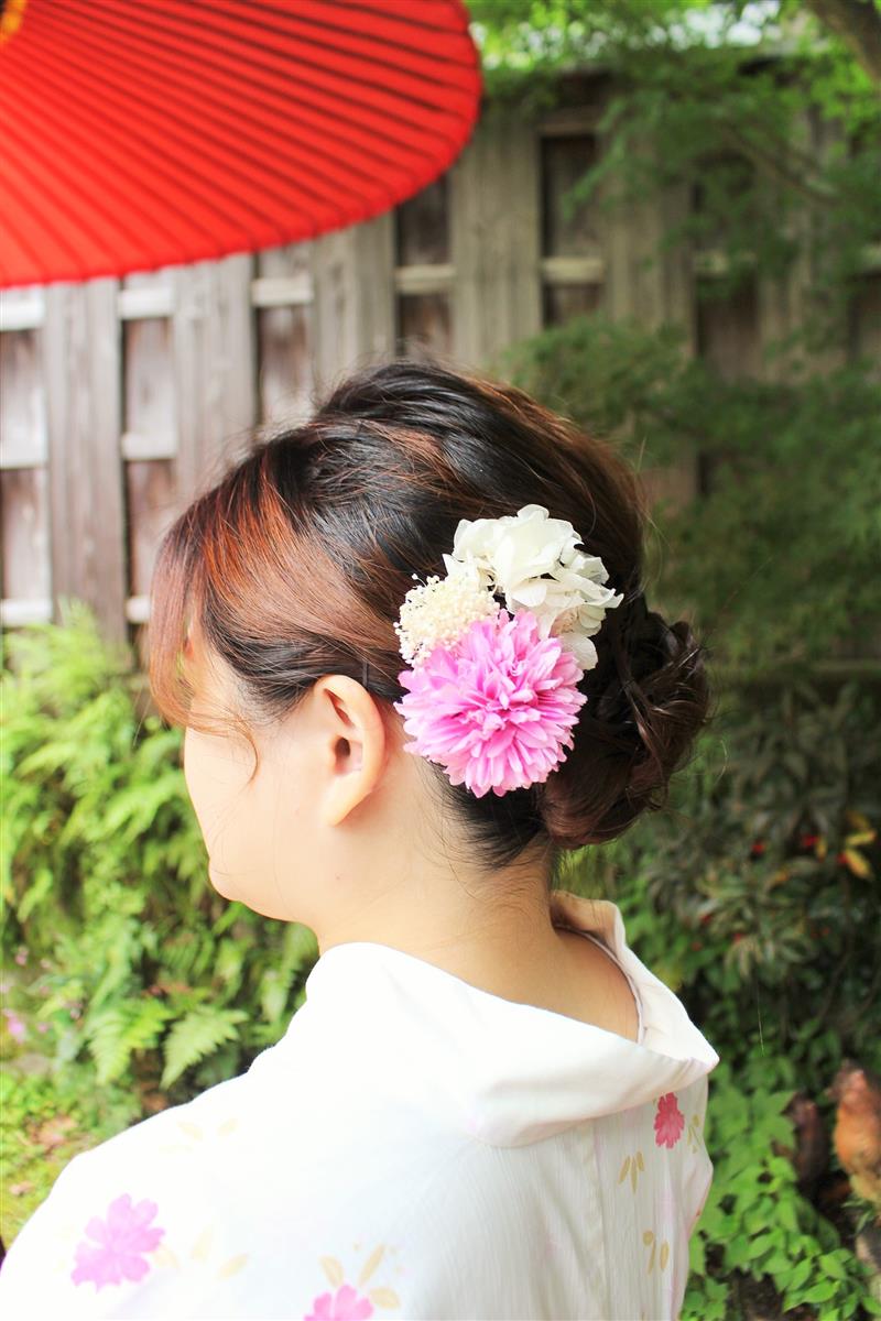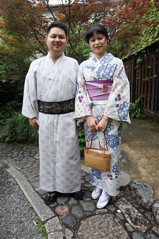 紫陽花色や紫陽花柄の浴衣を着てみたり、傘をさしたりして