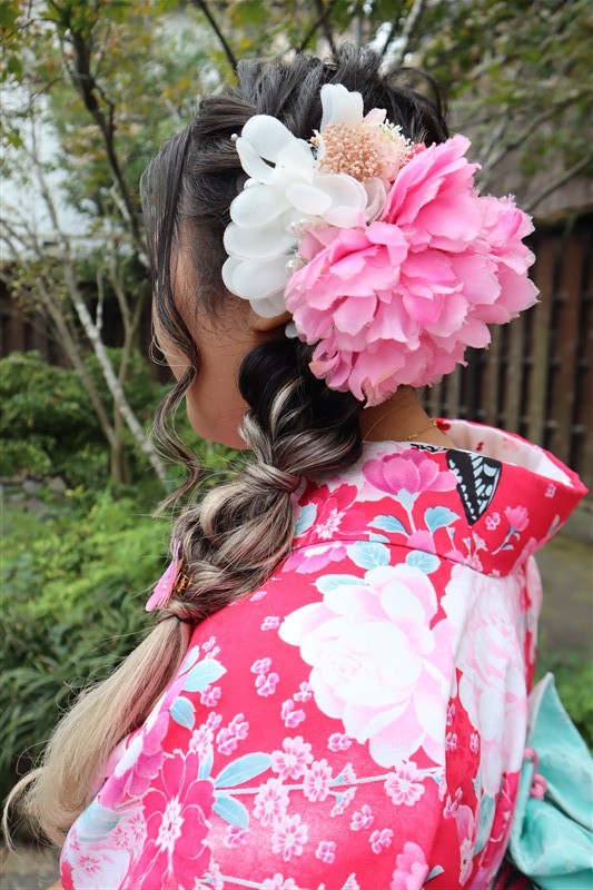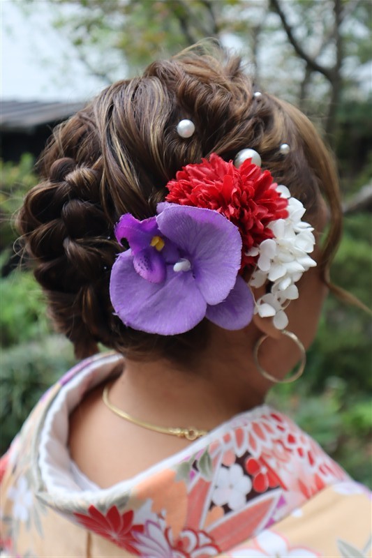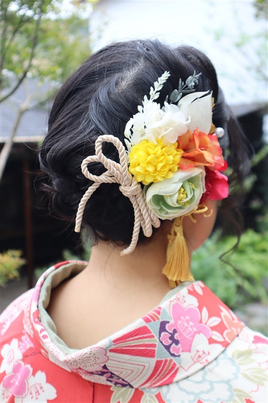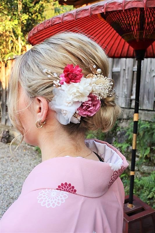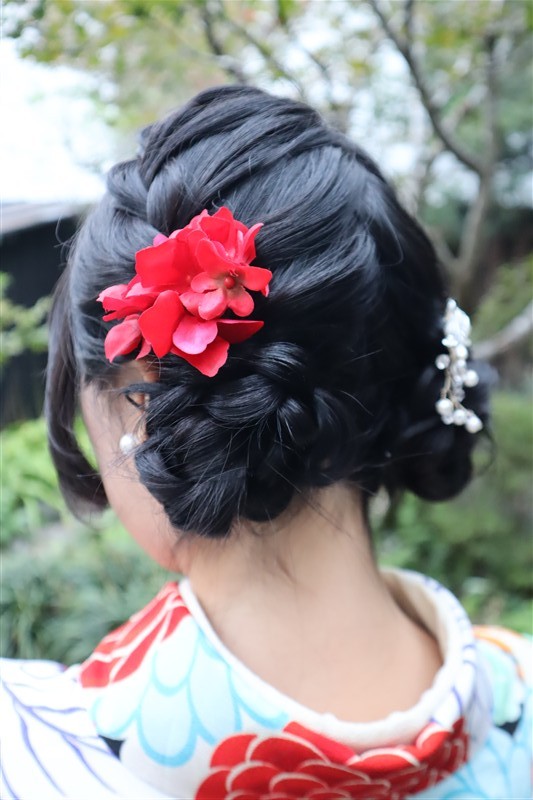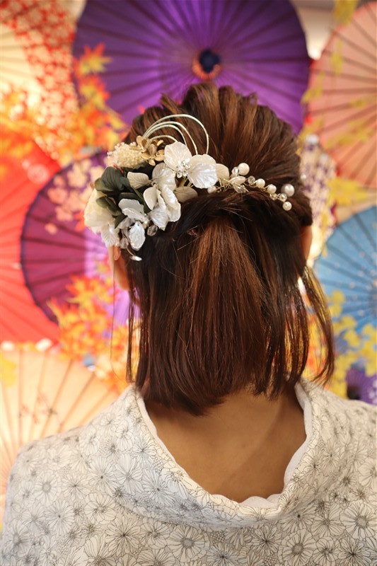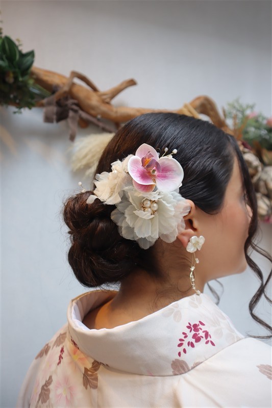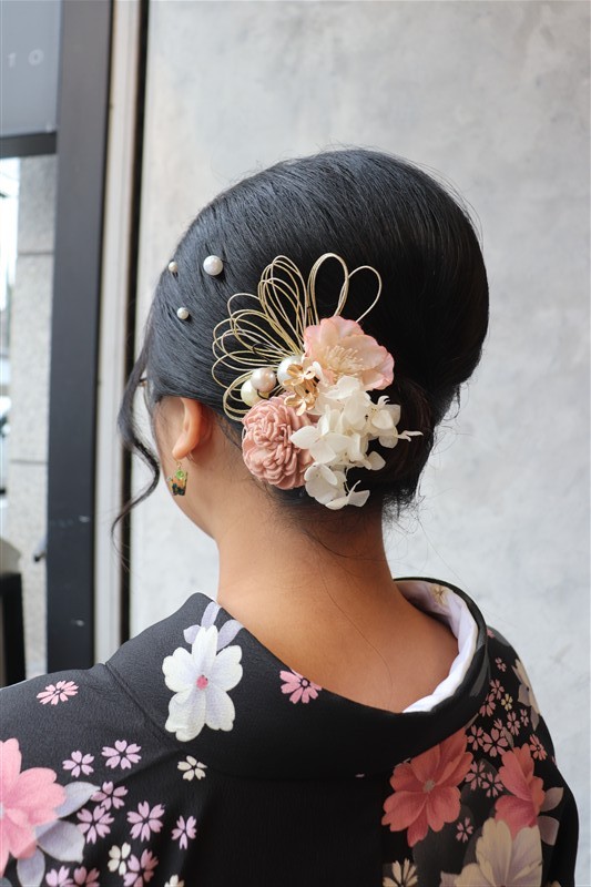 ヘアセットのオプションを追加すれば、より華やかな和のコーディネートに仕上がります。