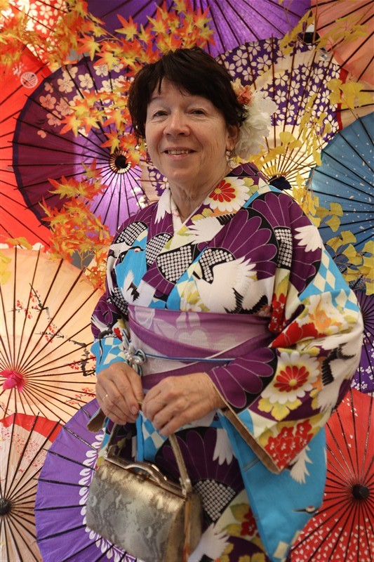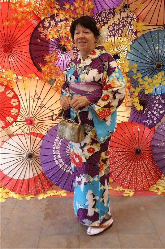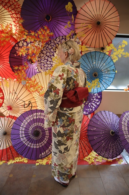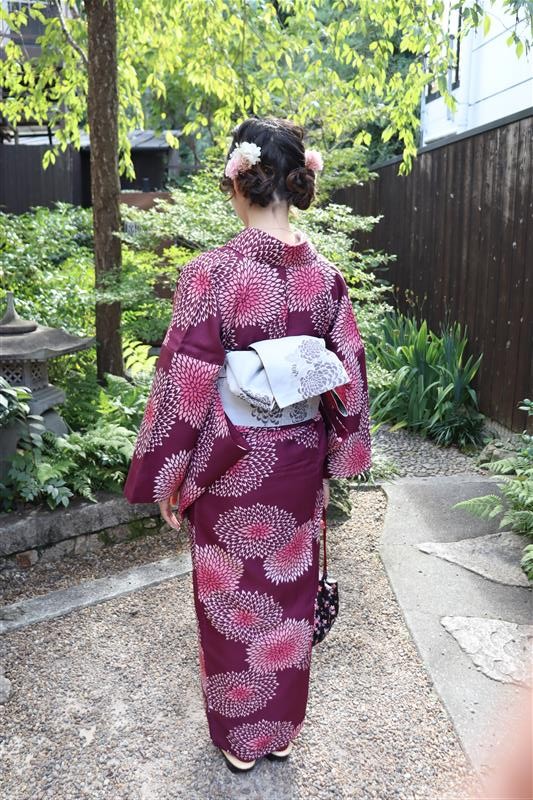 着物姿が光に照らされていっそう美しく映えます。
