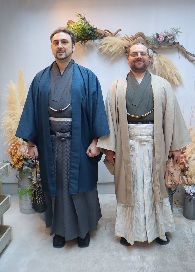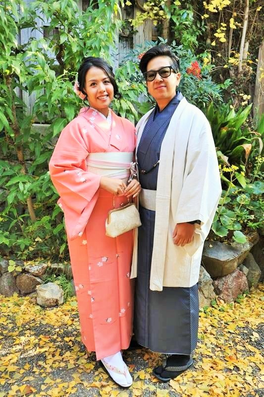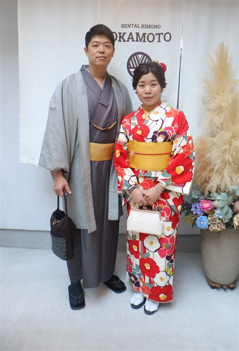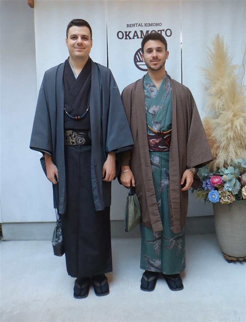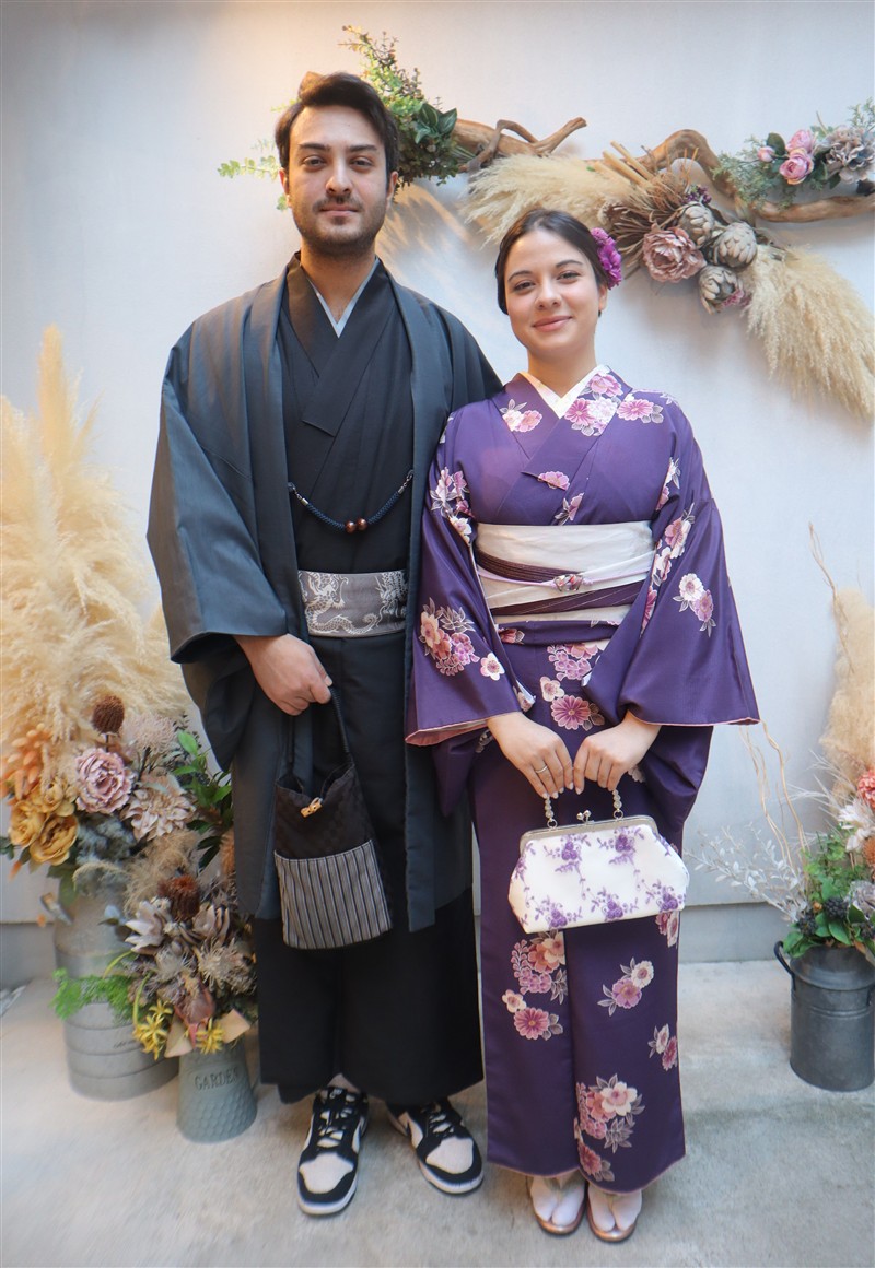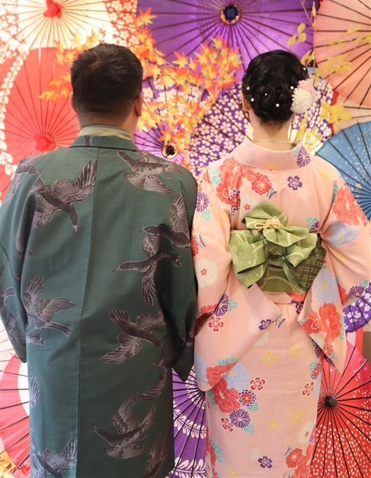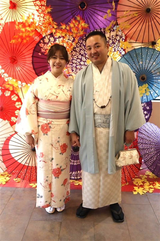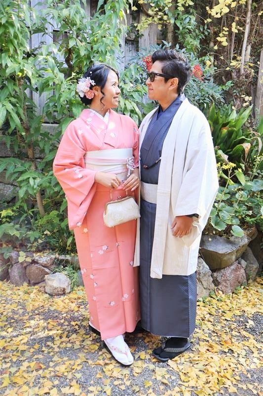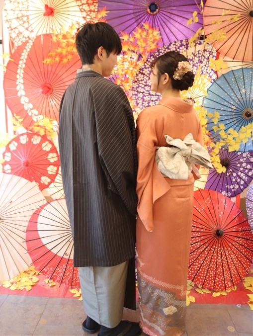 男性も、女性と合わせたコーディネートでカッコよく着て頂いただくこともできますので、是非着物でお出掛けください。