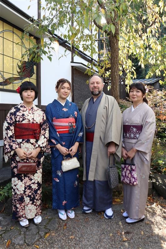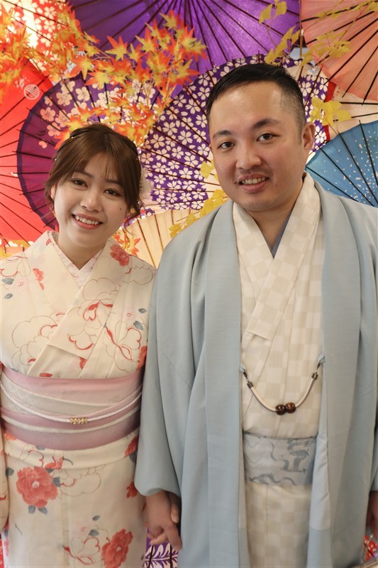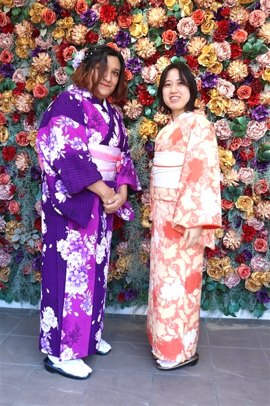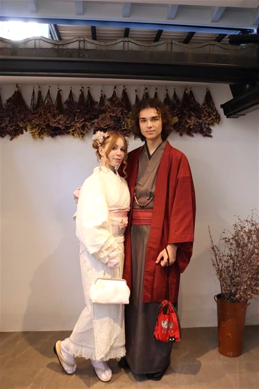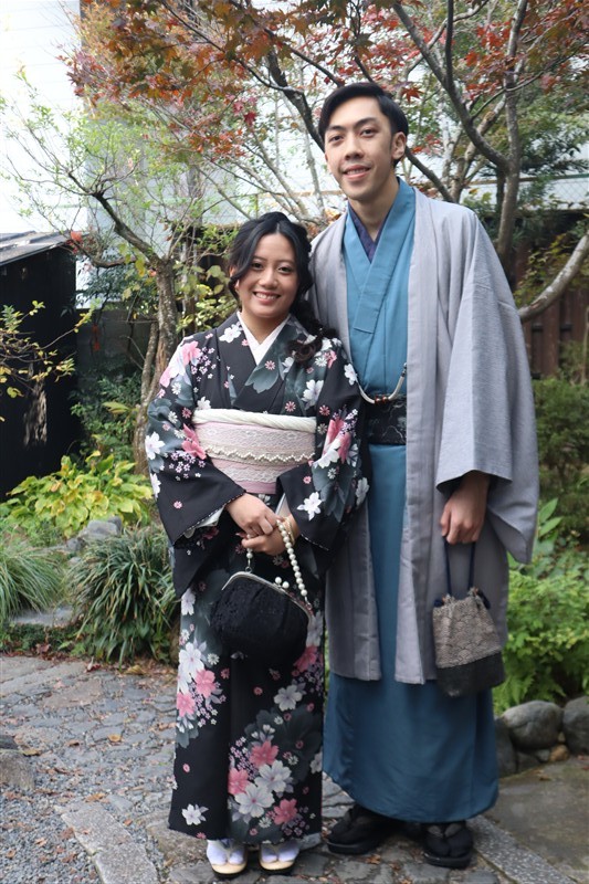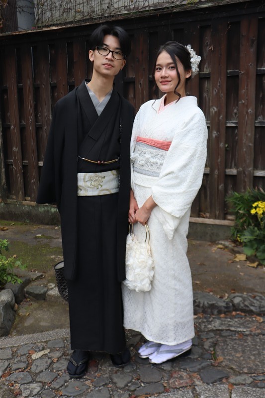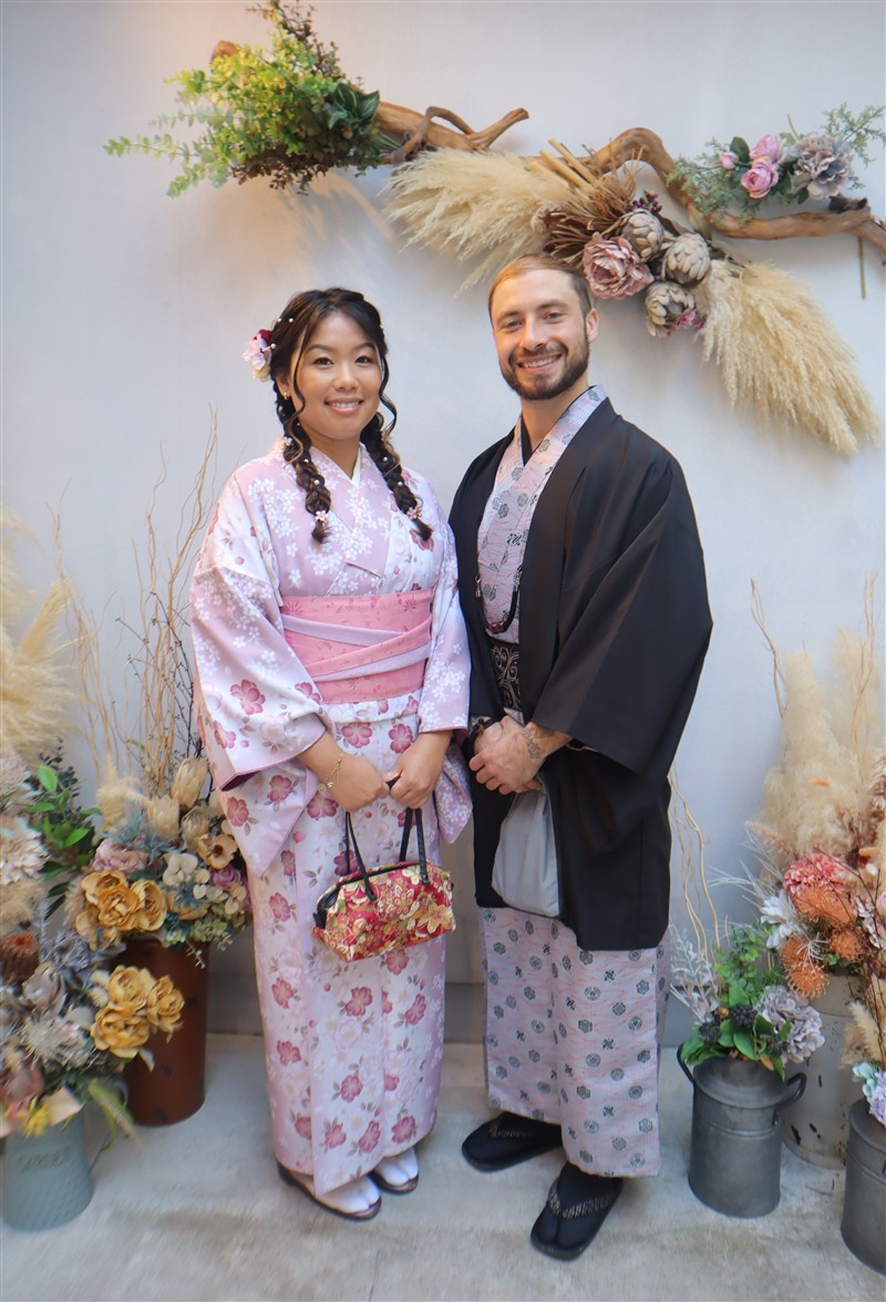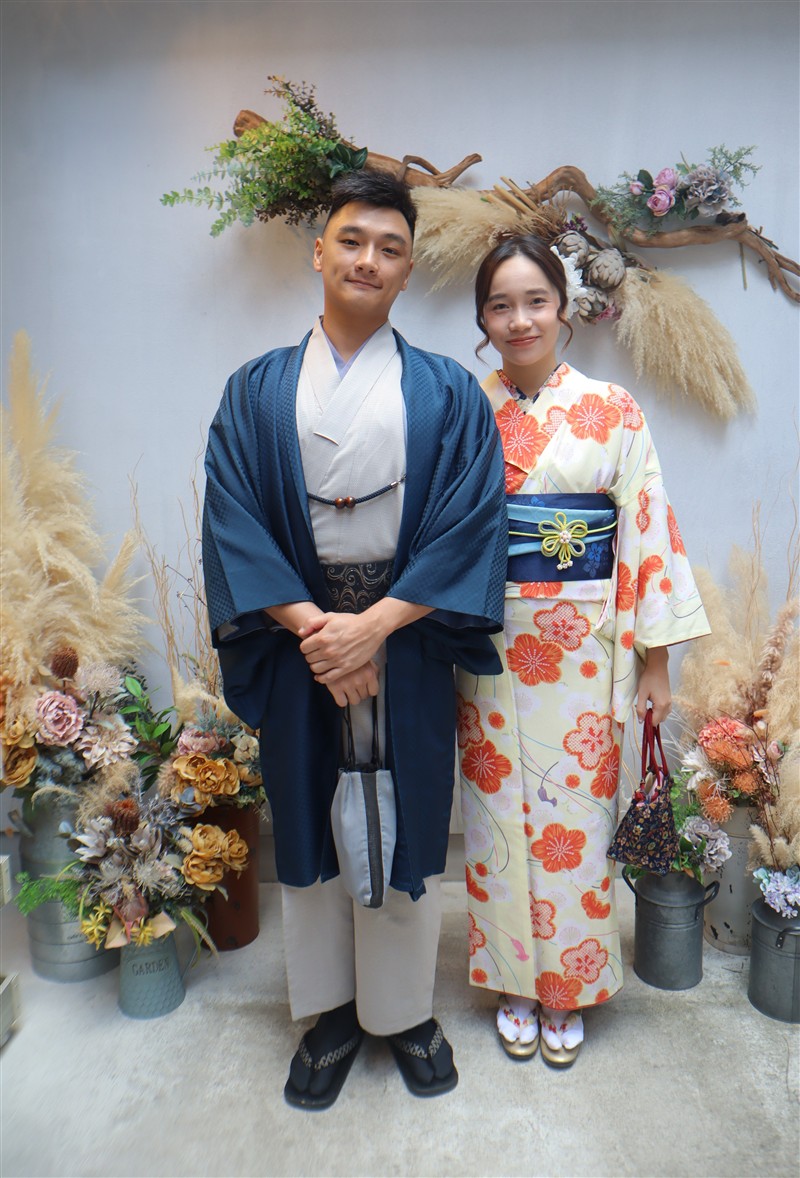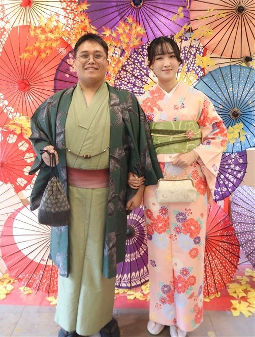 男性も、女性と合わせたコーディネートでカッコよく着て頂いただくこともできますので、是非着物でお出掛けください。