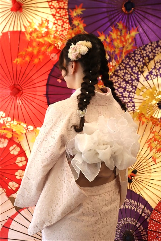 レンタル着物岡本では、レースの着物やレース小物、ファーの飾りを使ったアイテムで、デコレーション出来るDECOCOプランが大人気です!
