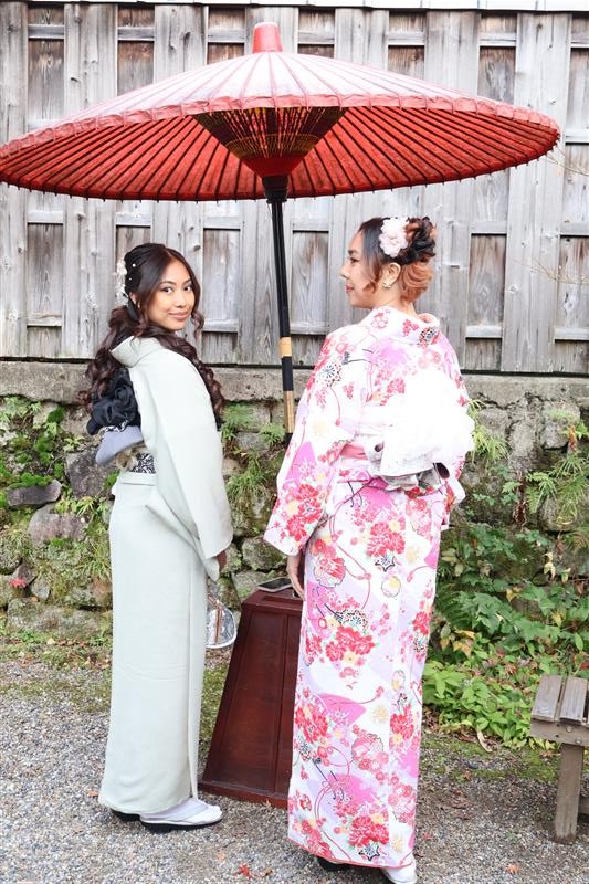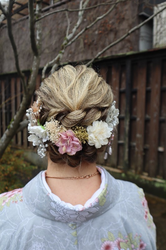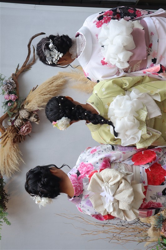 経験豊富なスタッフが着崩れにくい着付けと写真映えするへアセットを丁寧に行いますので着物が初めての方でも安心して着ていただけます📸✨
