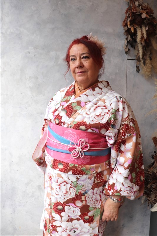 着物姿で歩くことで自然と背筋が伸び、