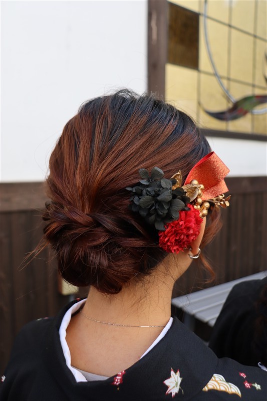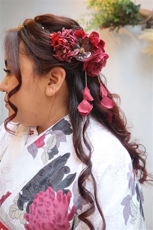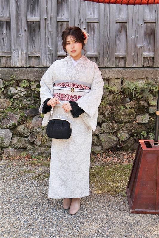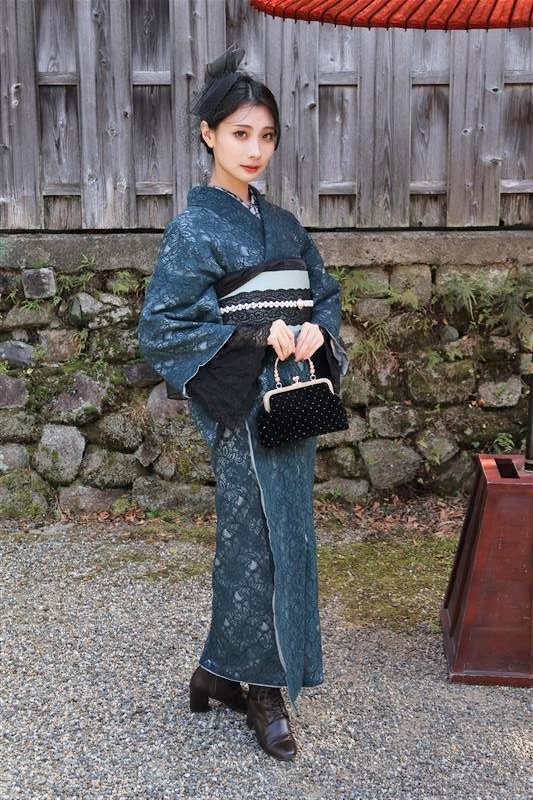 深みのあるえんじ色や紺、黒などの落ち着いた着物に、帯や小物で赤やからし色を添えると、節分らしい“縁起の良さ”を感じさせる装いになります。