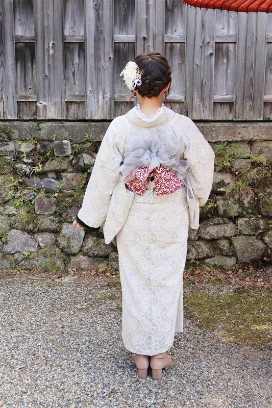 この日の着物コーディネートは、冬らしさと春らしさをバランスよく取り入れるのがおすすめです😊