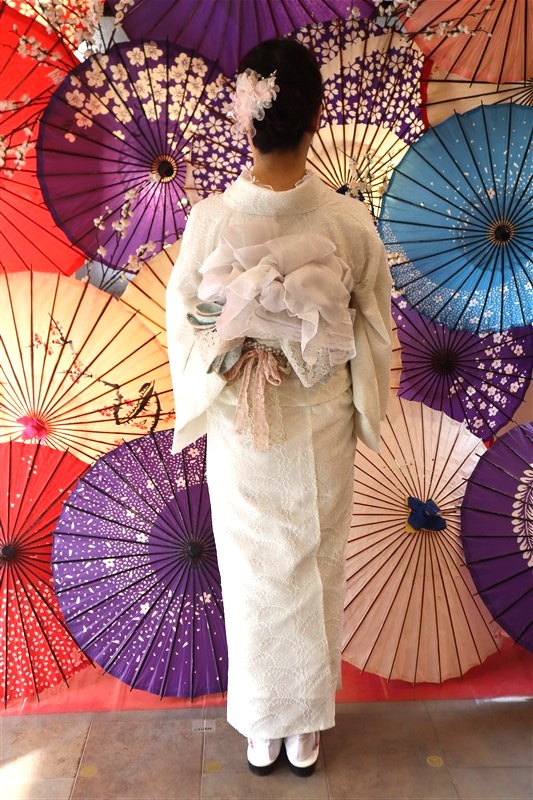 淡い色味の着物や、女性らしいやさしい柄のコーディネートがおすすめです。