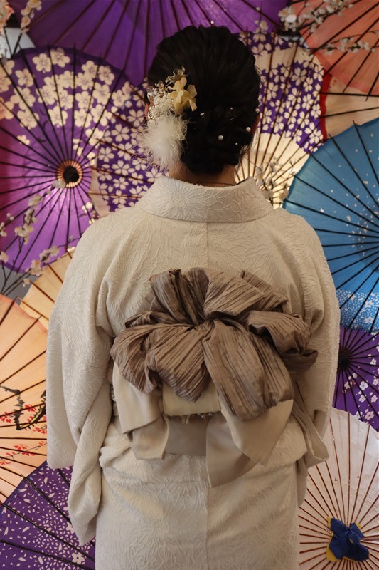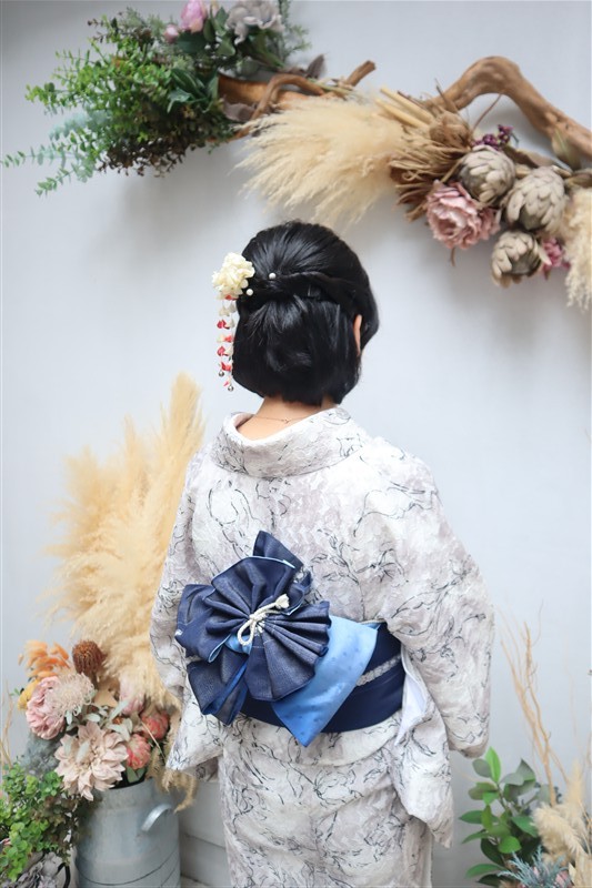 夜は冷え込むこともあるので、羽織やショールを合わせると安心です。