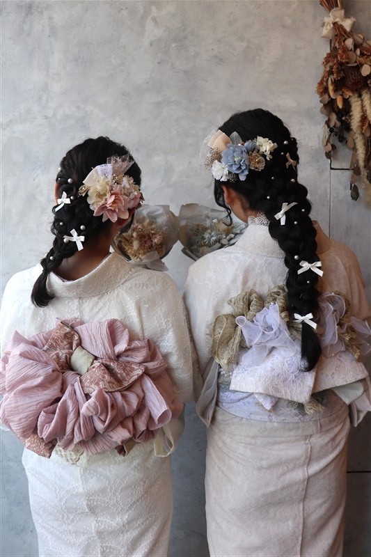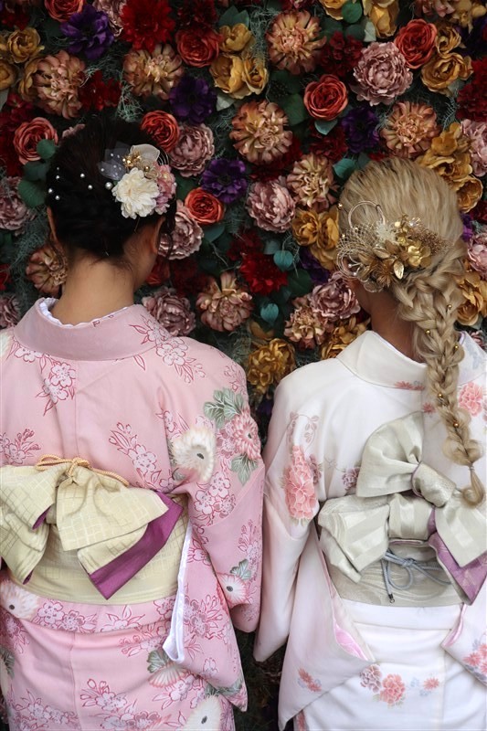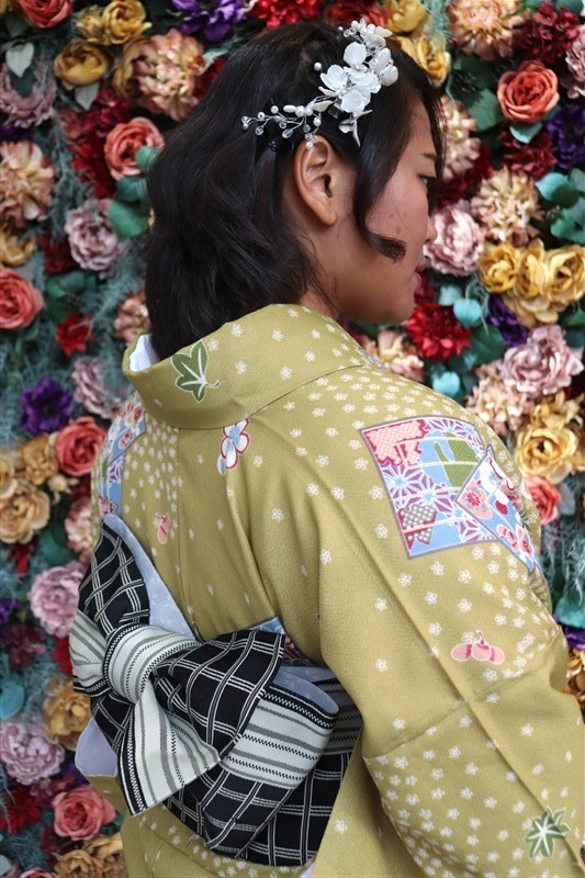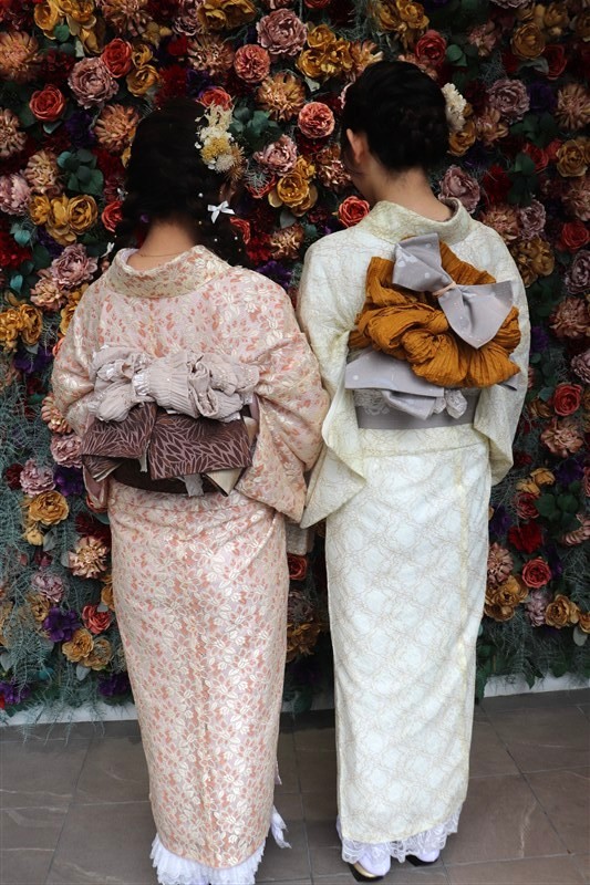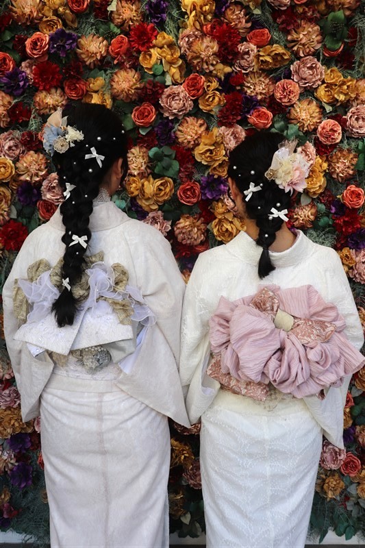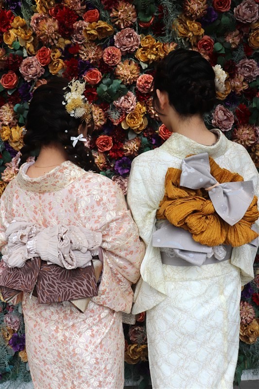 梅のやわらかな色合いには淡色系やくすみカラーの着物、椿の深みある色彩には紺や深緑などの大人っぽい着物がよく映えます。