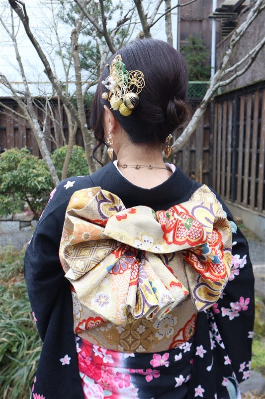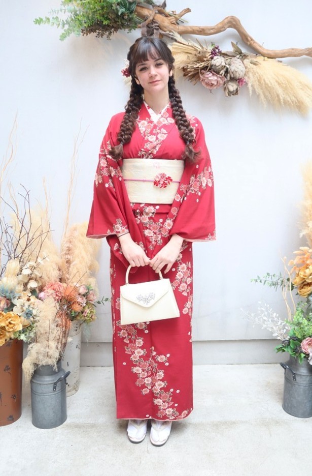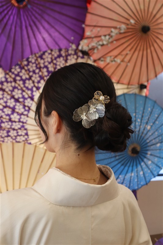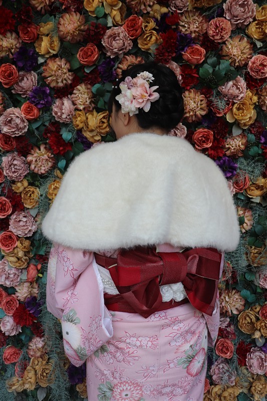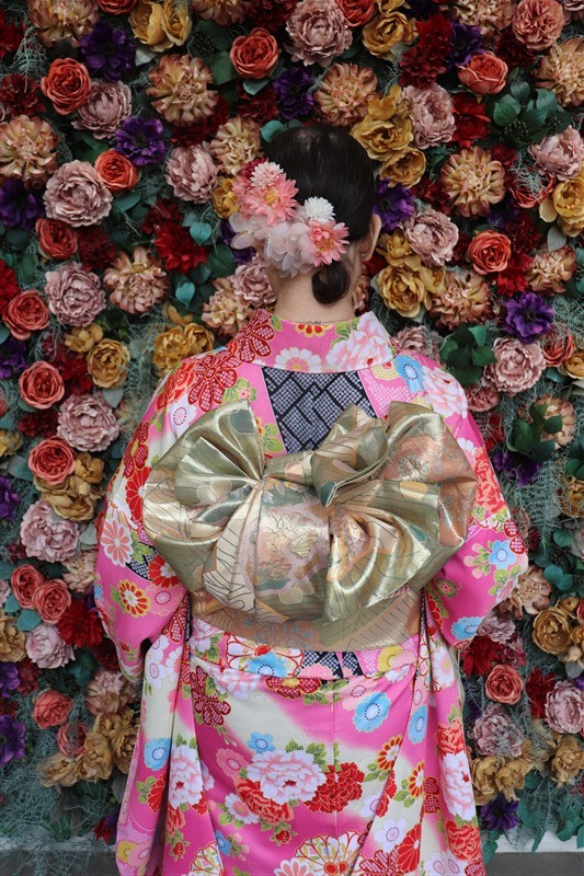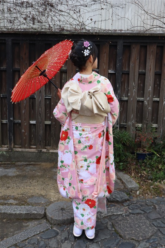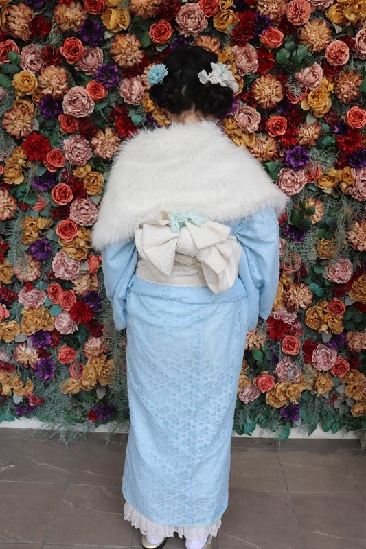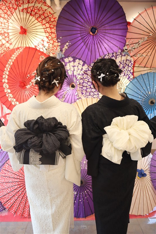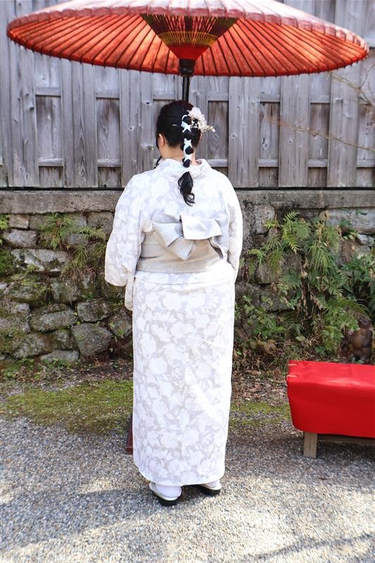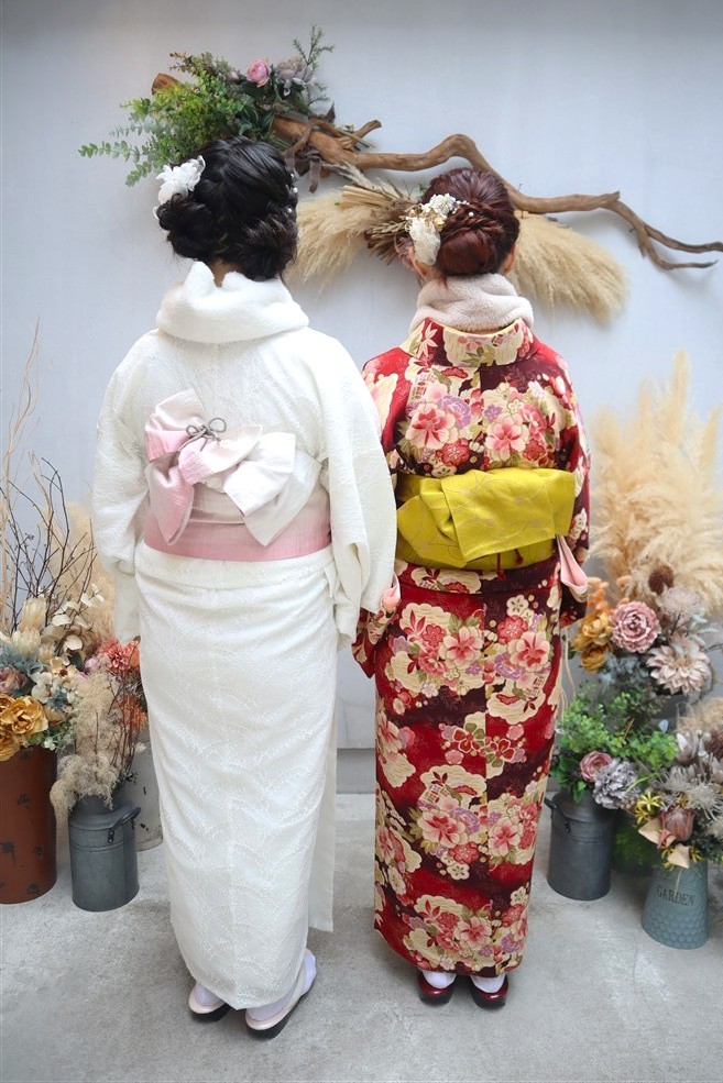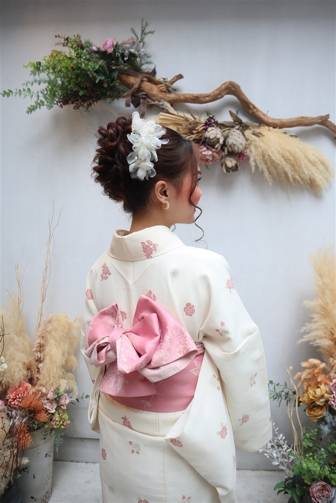 帯や小物に白や金を合わせると、お雛様のような上品な印象に仕上がります。