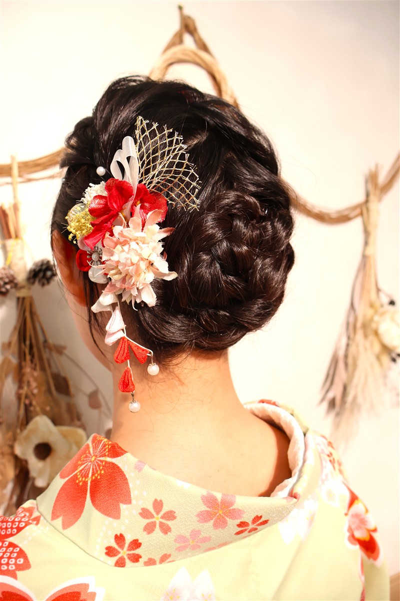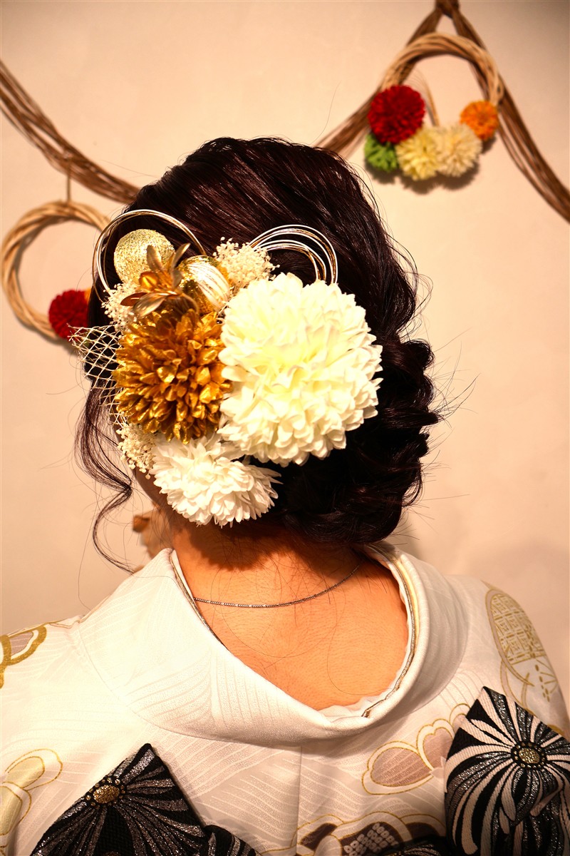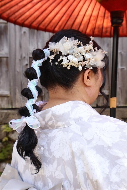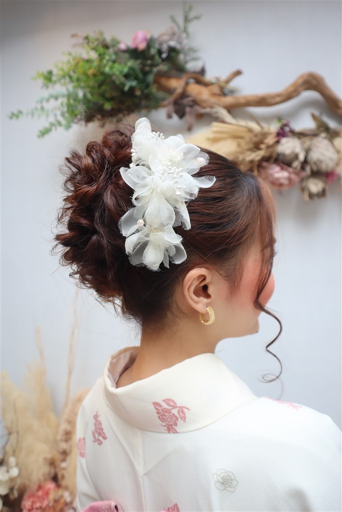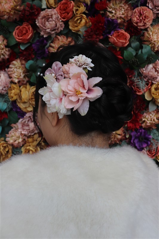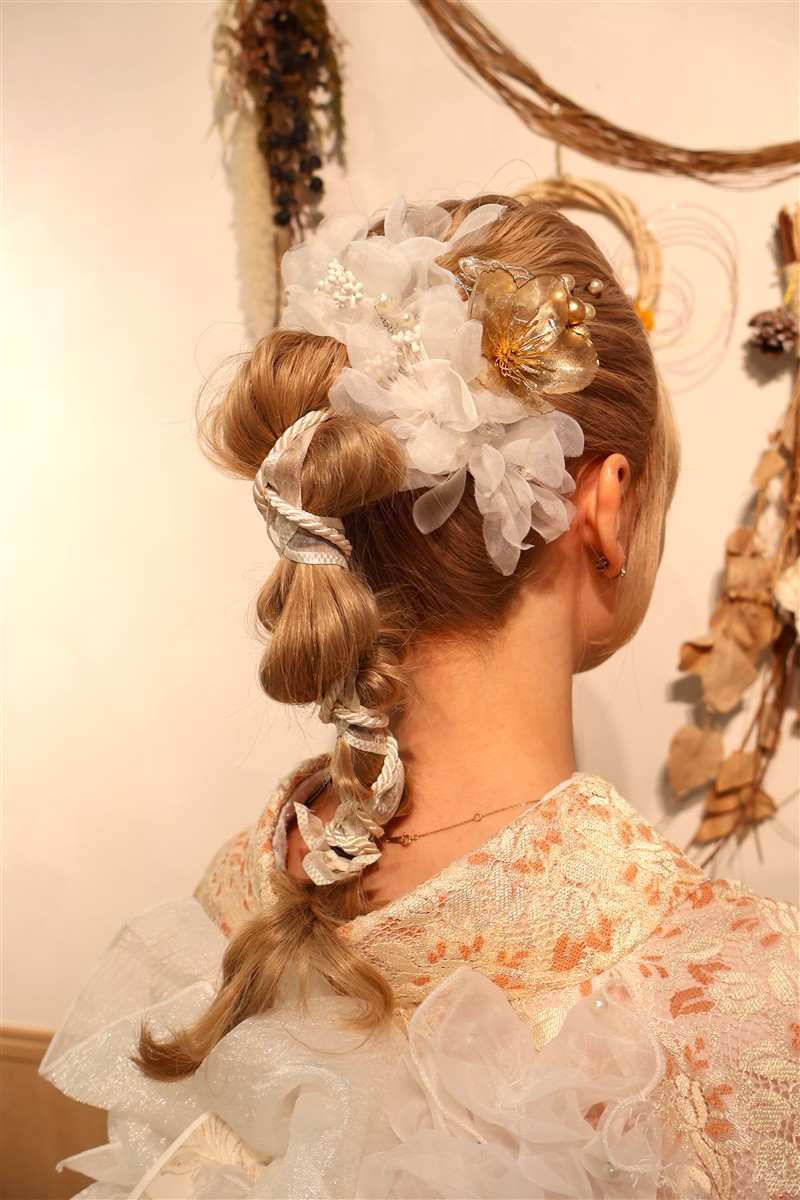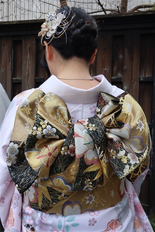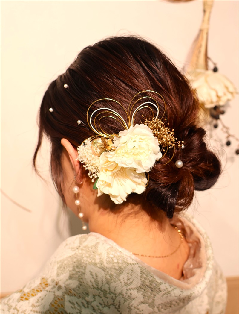 帯や小物に白や金を合わせると、お雛様のような上品な印象に仕上がります。