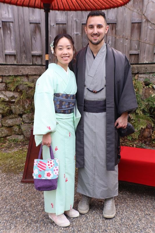 落ち着いた表情と伝統的な装束は、古都・京都の雰囲気とよく合います。
