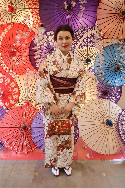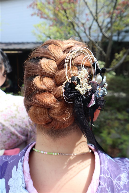 桜の余韻が残るこの時期、街並みにしっとり溶け込む訪問着や振袖といった上品で豪華な着物を着てみてはいかがでしょう☆