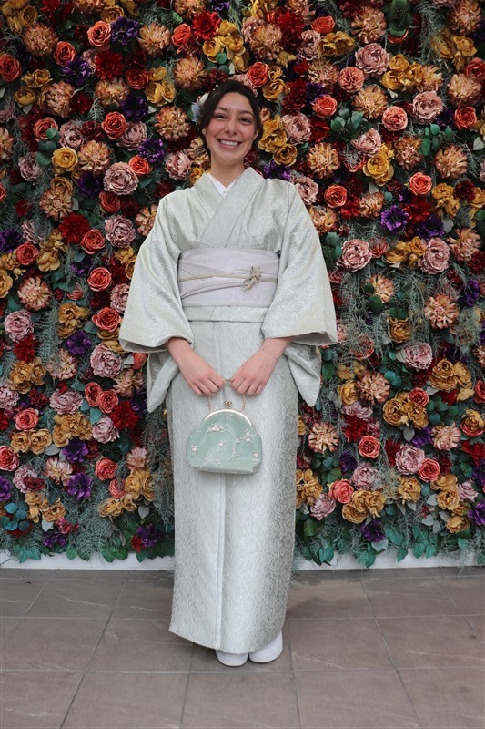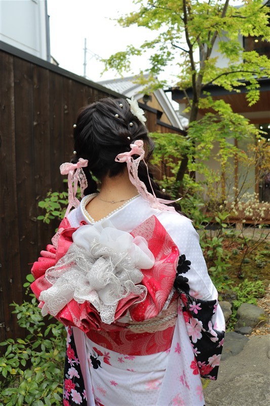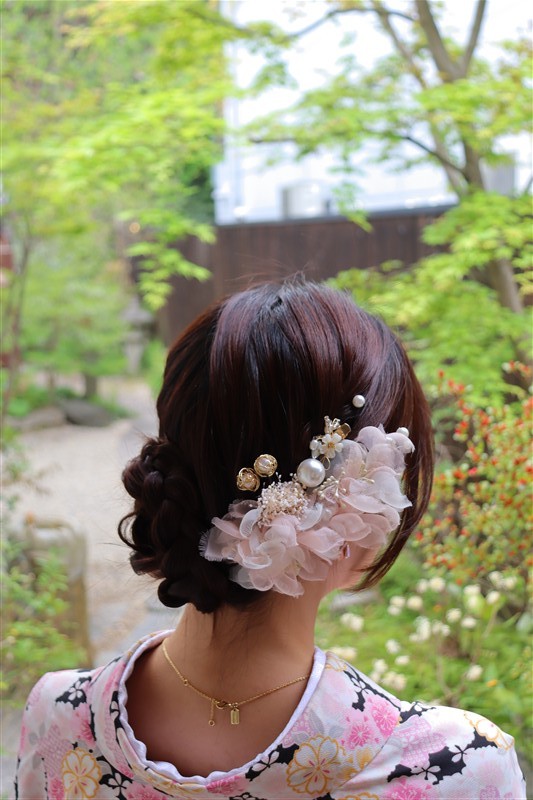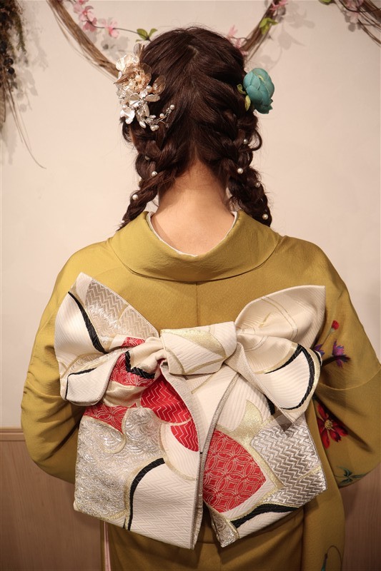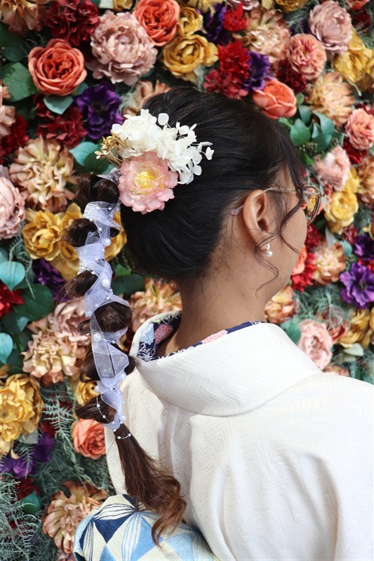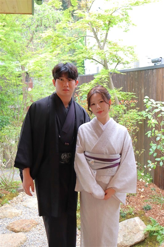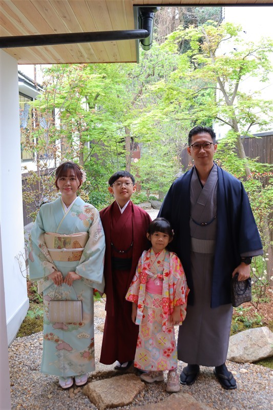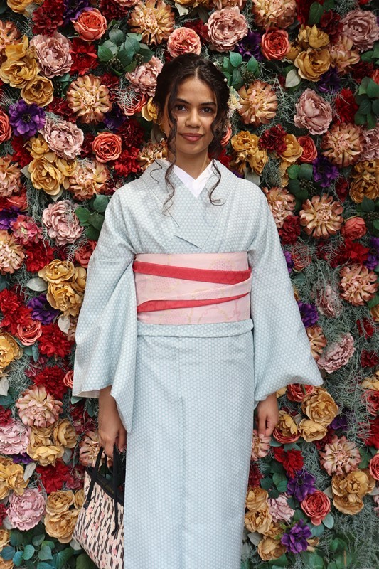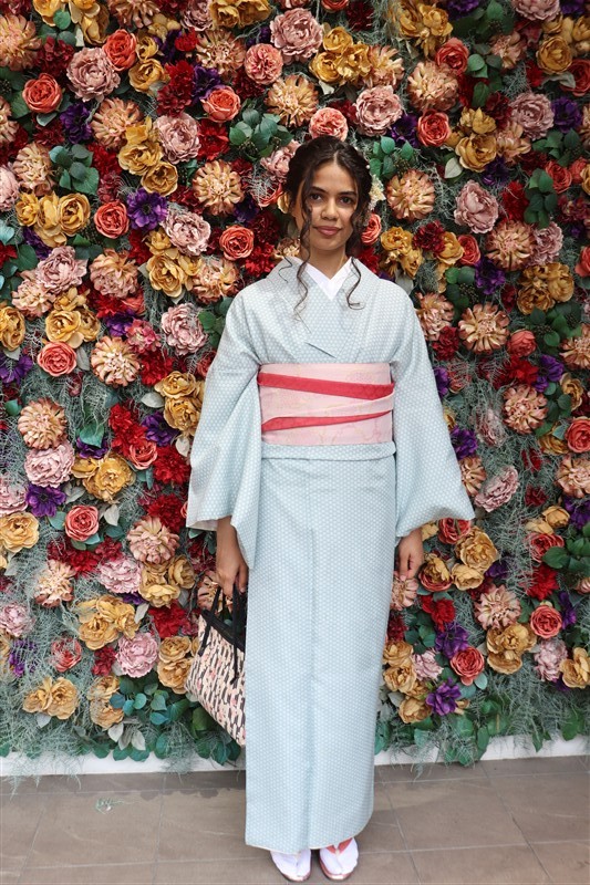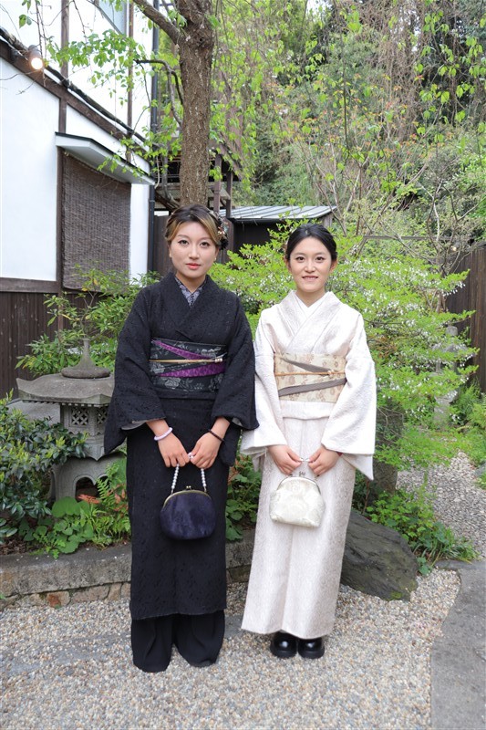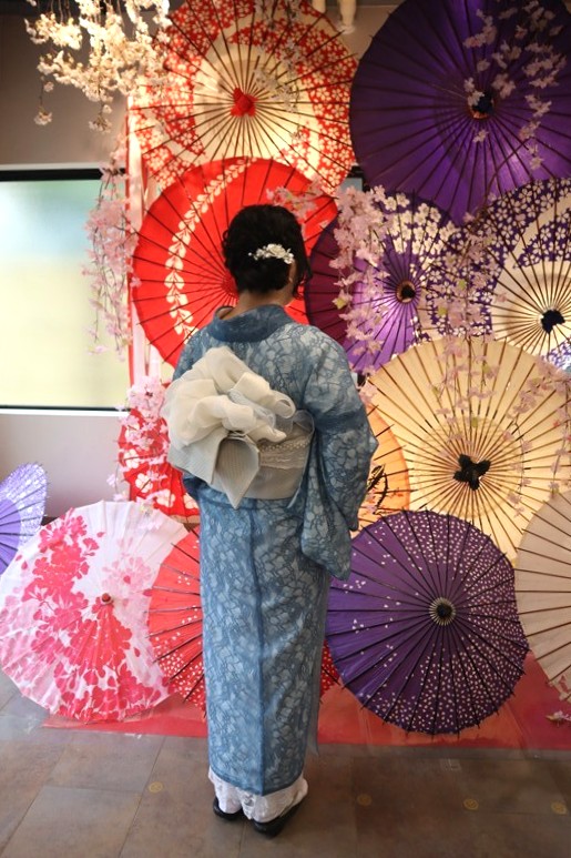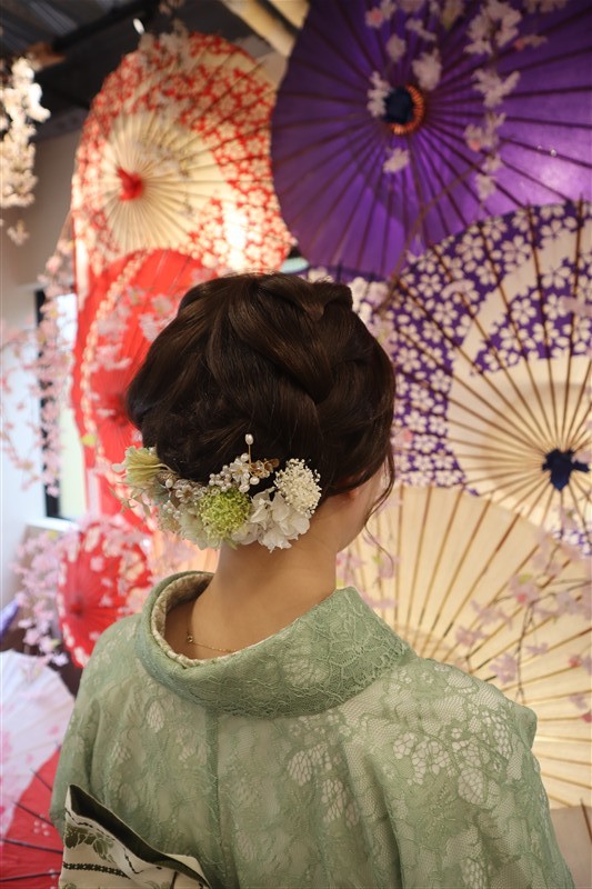4月中旬から下旬にかけては、新緑が美しくなり始め、やわらかな緑と着物の色合いがとてもよく映えます。