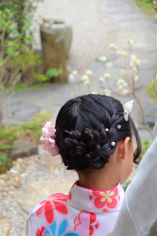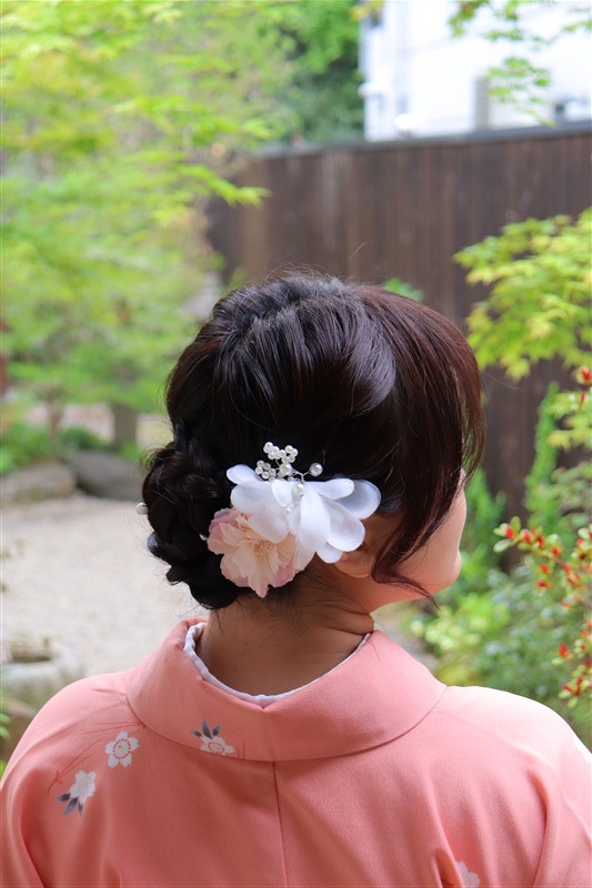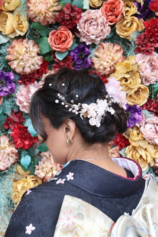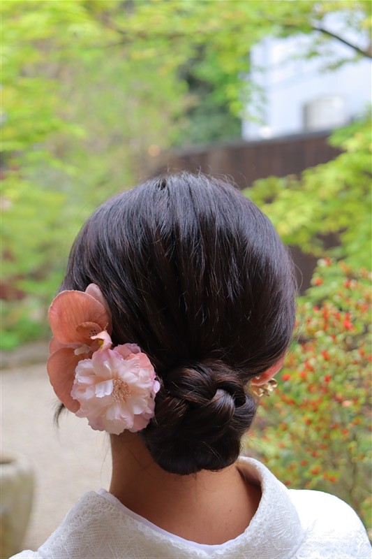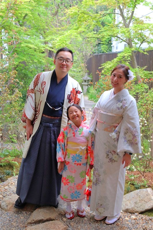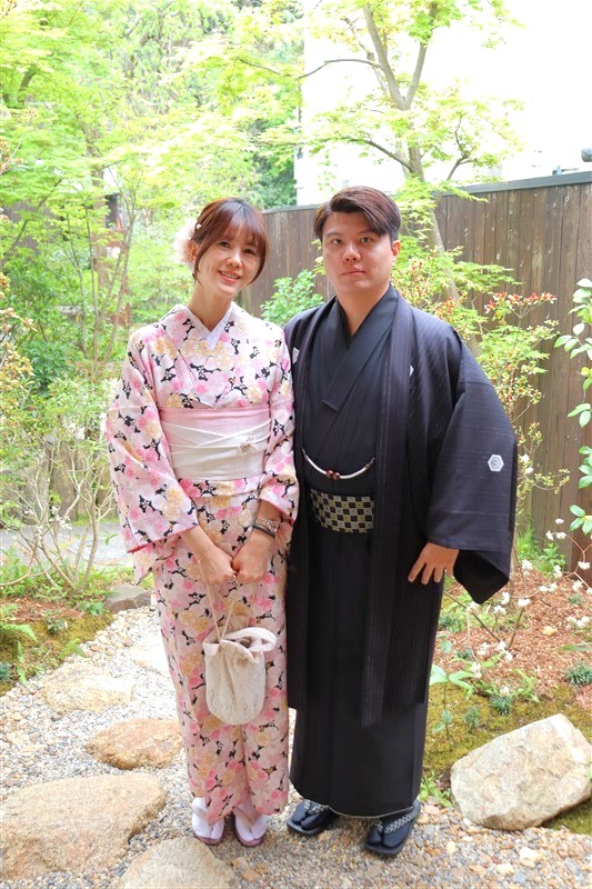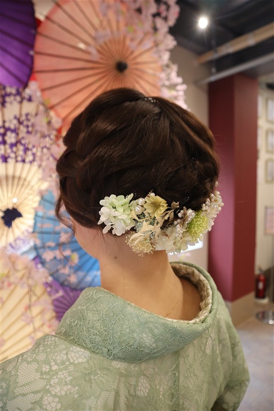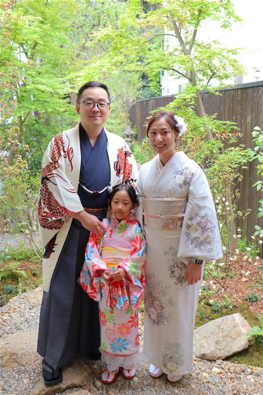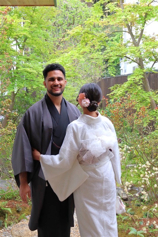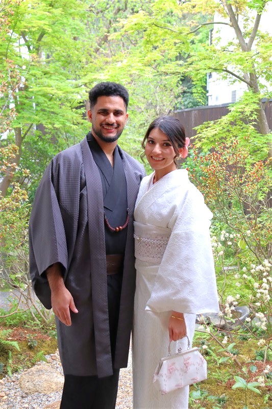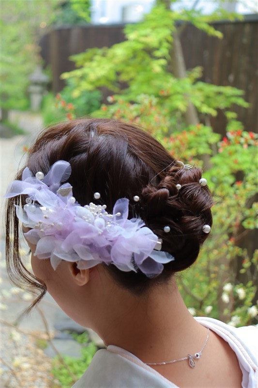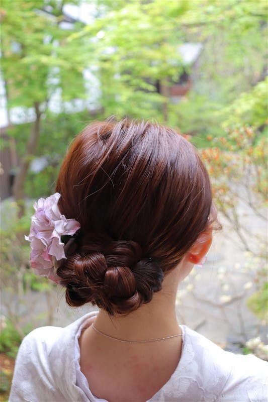 4月中旬から下旬にかけては、新緑が美しくなり始め、やわらかな緑と着物の色合いがとてもよく映えます。