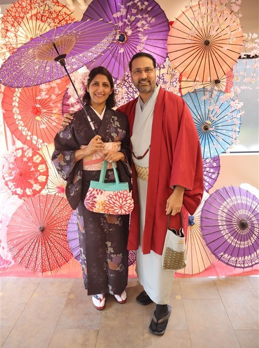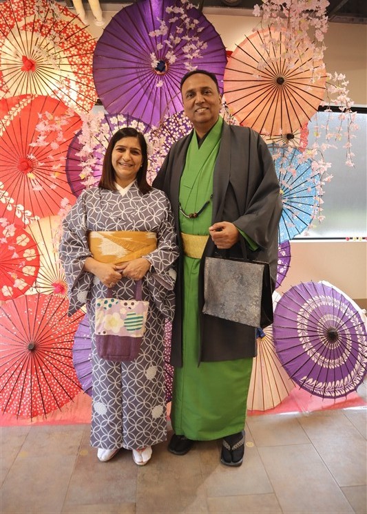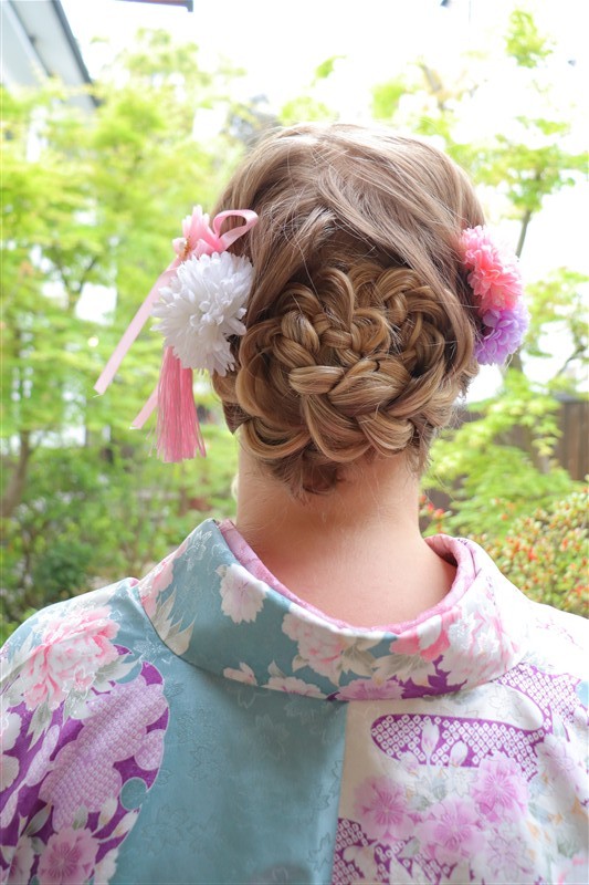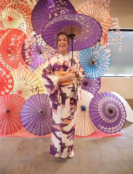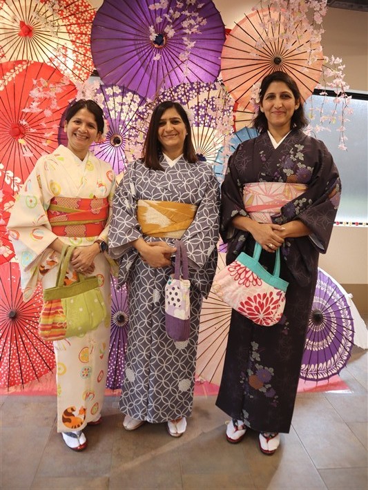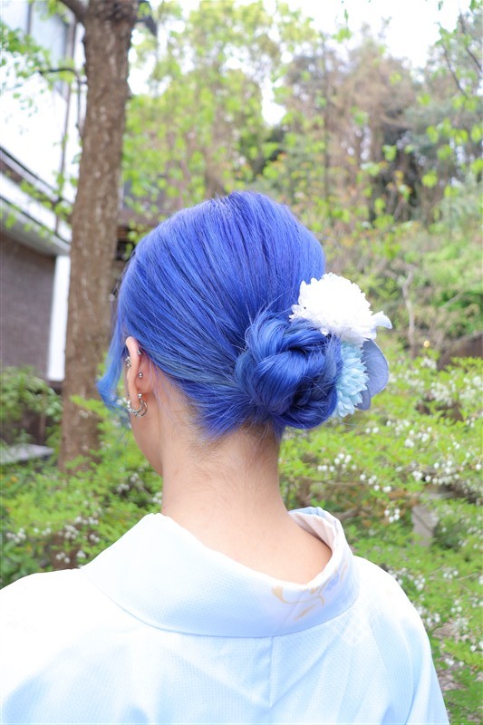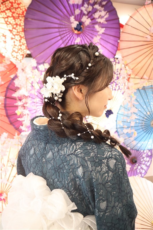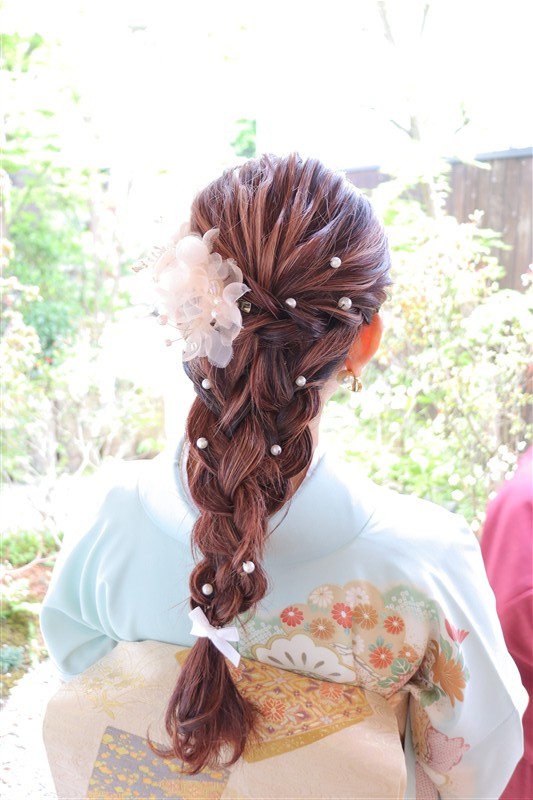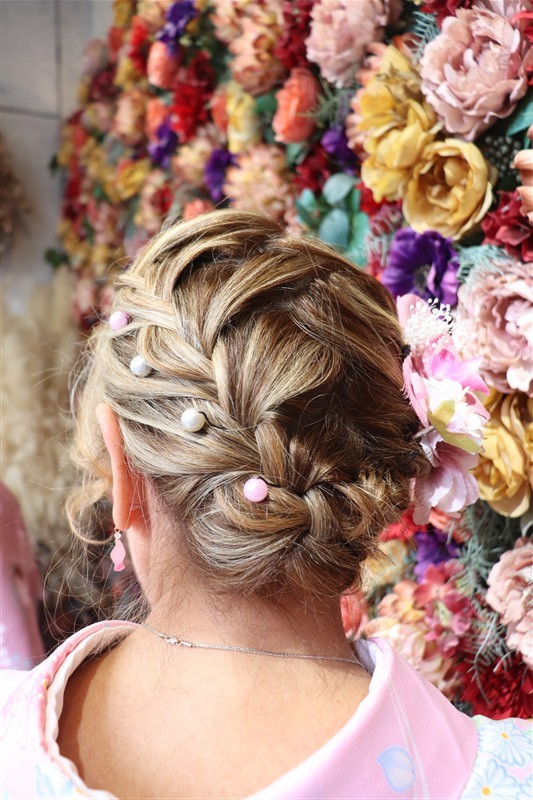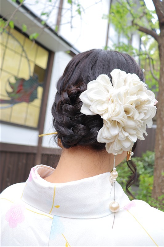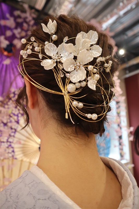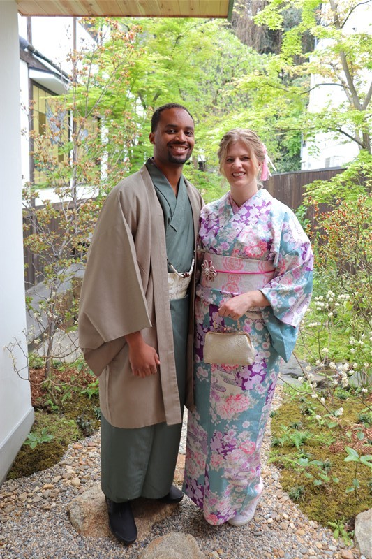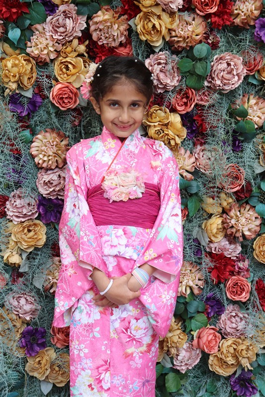 4月中旬から下旬にかけては、新緑が美しくなり始め、やわらかな緑と着物の色合いがとてもよく映えます。