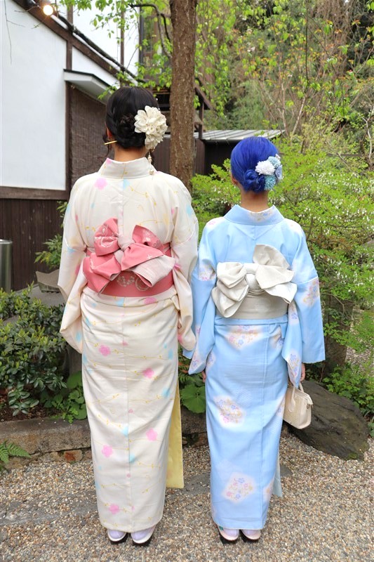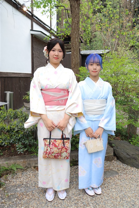 淡い色合いの着物や、くすみカラーのコーディネートは、この時期の京都の景色と相性抜群です。